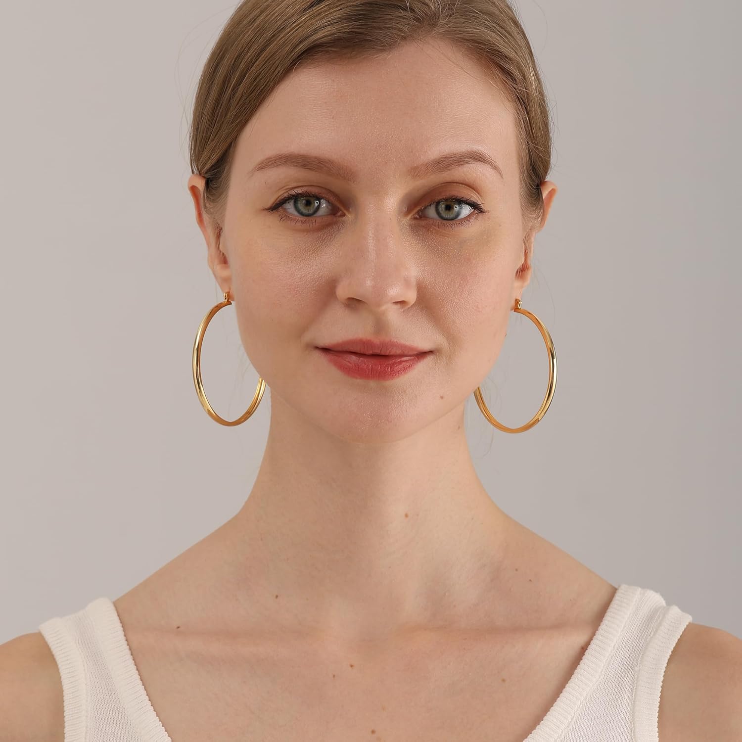 - Big Gold Hoop Earrings Size:Women’s hoop earrings have many sizes for you to choose,You can choose size 20mm-60mm to meet your different outfits demands. Classic Round Hoop Earrings will catch your audience’s eyes even you have long hair,which will keep shining for a long time.