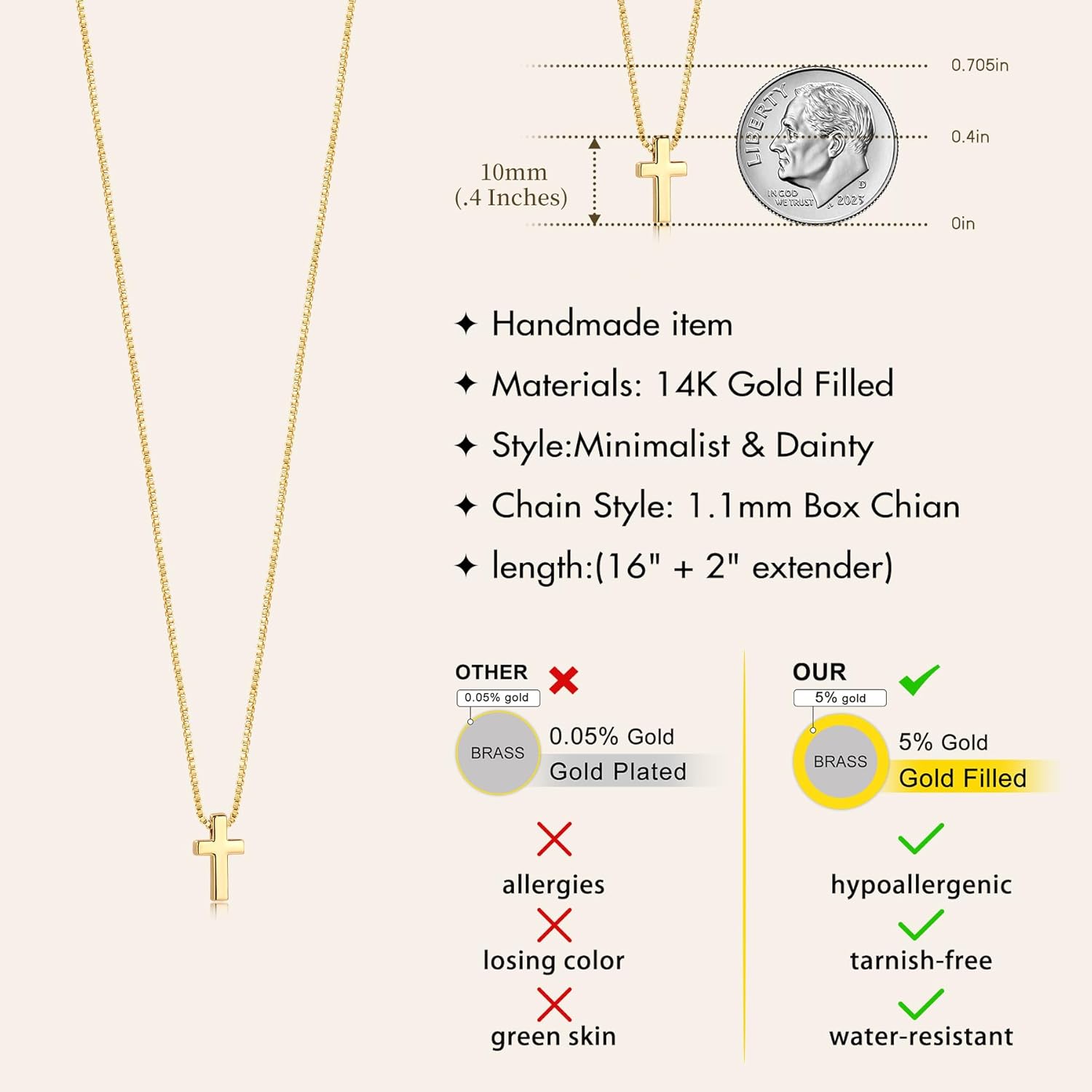 - [Dainty Gold Cross Pendant for Women] This small gold cross necklace features a minimalist trendy 3D pendant that symbolizes faith, love, and elegance. Designed for women or men, it’s perfect for daily wear or layering with other dainty necklaces for a personalized look.