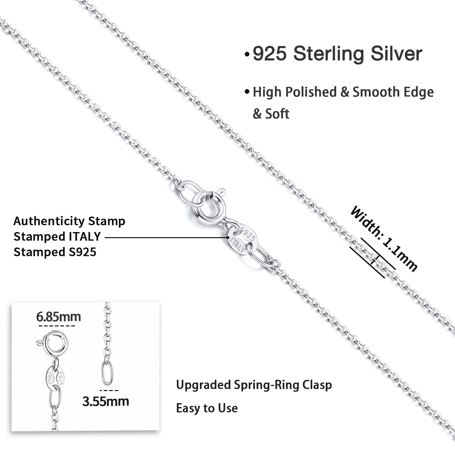 - Thin But Sturdy: Super thin width of 1.1mm, really delicate and elegant looking, high quality material adopted and compact links on the chain to ensure this thin silver chain is sturdy enough and would not break easily. Upgraded spring-ring clasp adopted, making it stronger and more durable. With exquisite polished by skilled craftsmen, this silver necklace chain is soft, to lay comfortably on your collar bone and perfect for everyday wear.