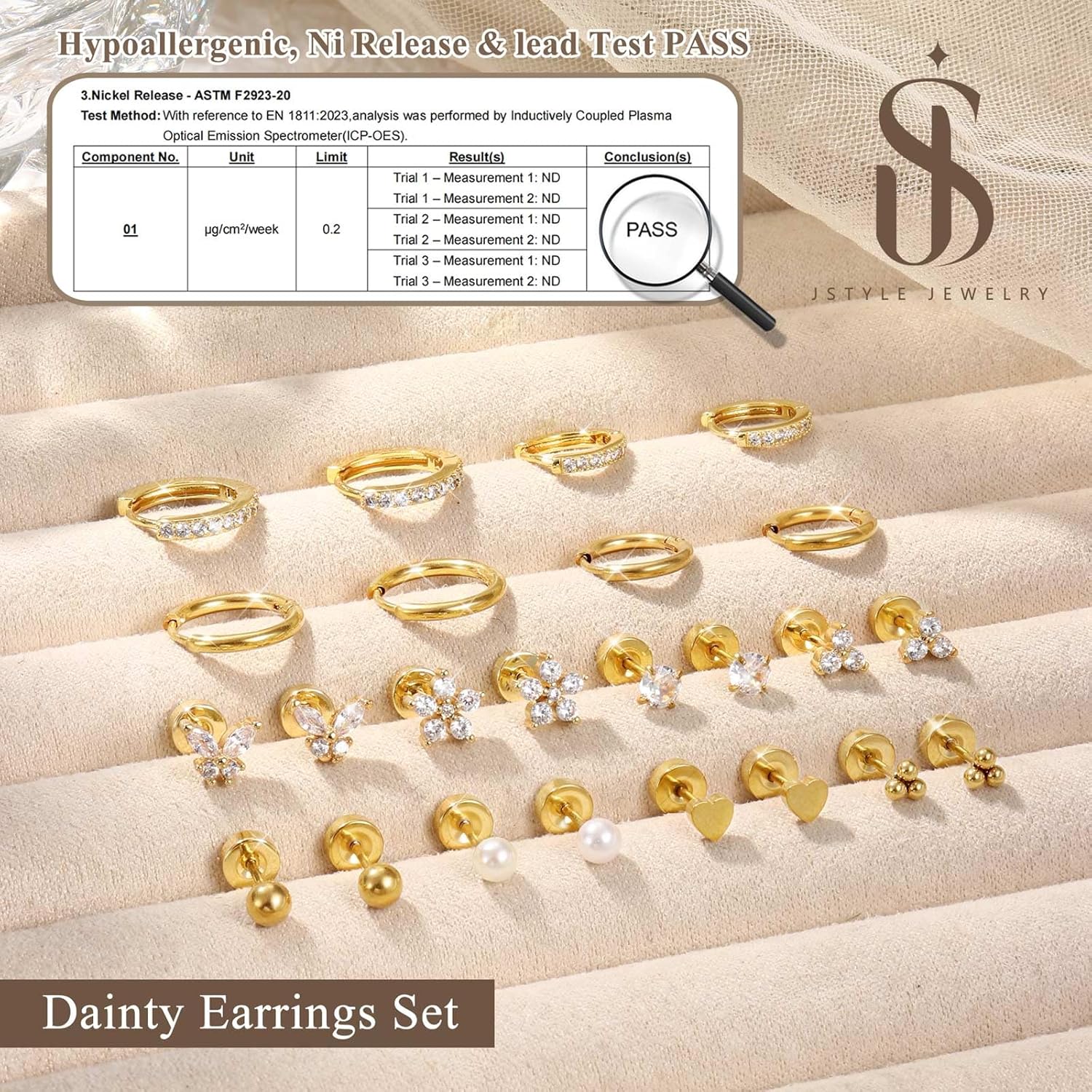 Photos: Jstyle Hypoallergenic 14K Gold Plated Stud Hoop Earrings for Women Men Surgical Stainless Steel Flat Back Earrings Small Huggie Hoops Cartilage Earring Set for Multiple Piercing… by Jstyle