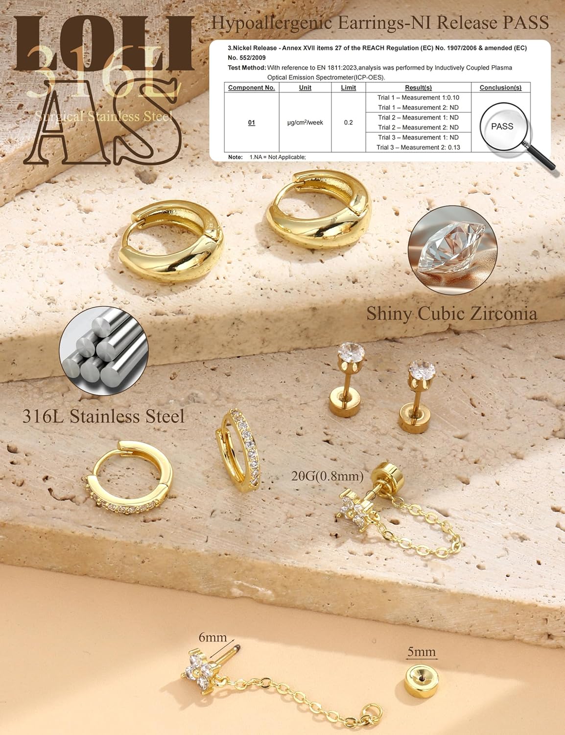 Top Pick — discover the LOLIAS Flat Back Earrings for Women Hypoallergenic Surgical Steel Earrings for Sensitive Ears-20G Cartilage Earring Stacks 14K Gold Plated Hoops Flatback Stud Earring Sets for… by LOLIAS, built for performance and designed for life in the United States.