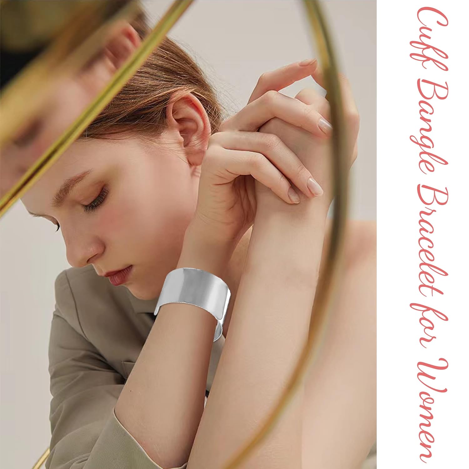- Wide Bangle Bracelet: Package contains 2 pieces gold/silver cuff bangle bracelets in different styles, including open cuff bracelet, thin bangle bracelets, wide smooth bracelets, stylish and novel design. A variety of styles are enough to meet your daily matching needs and show your unique charming