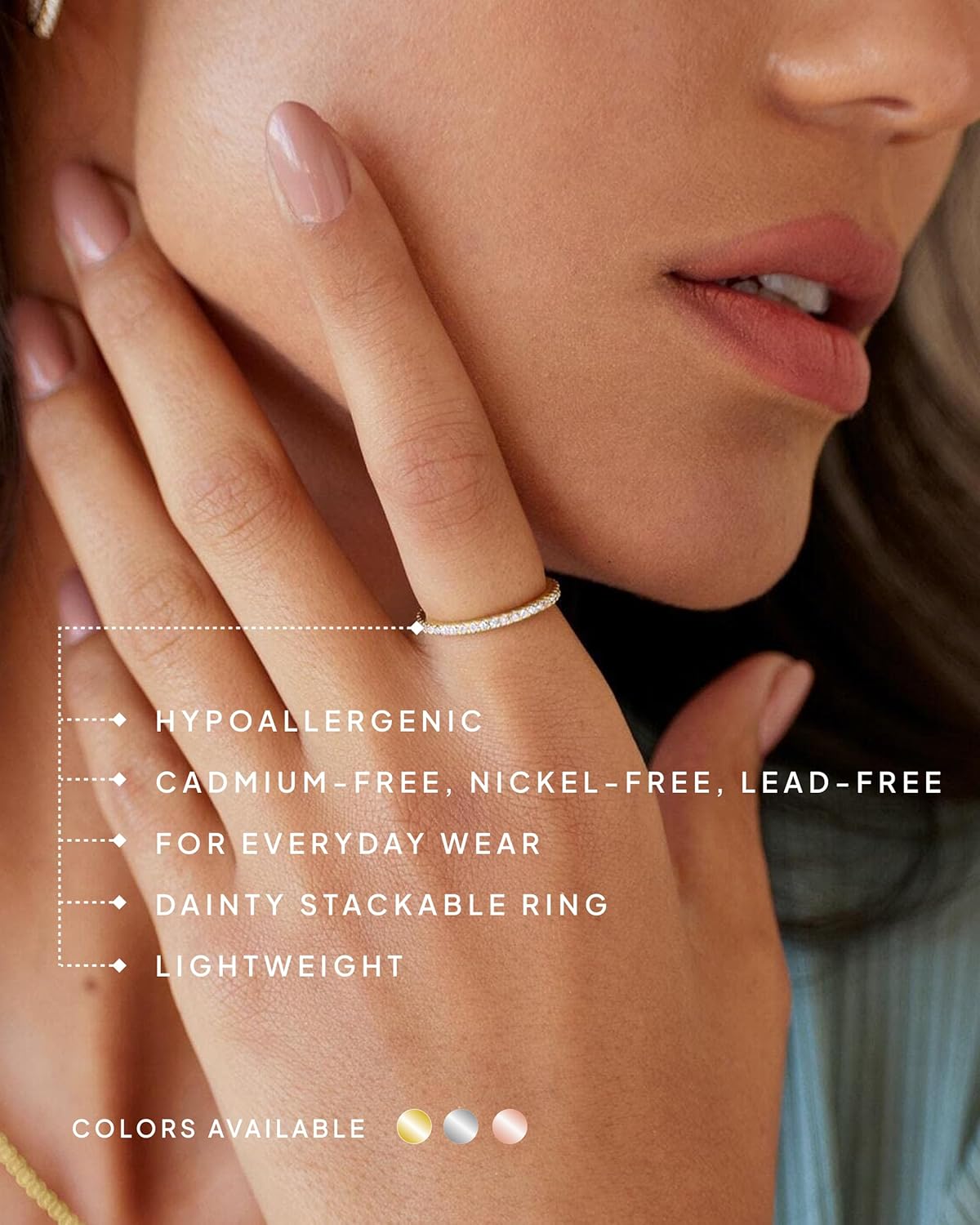- PREMIUM QUALITY: Crafted with 14K yellow gold plating over sterling silver, these eternity band rings for women feature premium AAAAA cubic zirconia stones. The long-lasting finish is hypoallergenic, nickel-free, lead-free, and cadmium-free for comfortable everyday wear. Ideal as travel wedding bands, promise rings, or everyday stackable staples, this versatile ring transitions seamlessly from workday to night, making it a go-to addition to any jewelry collection.