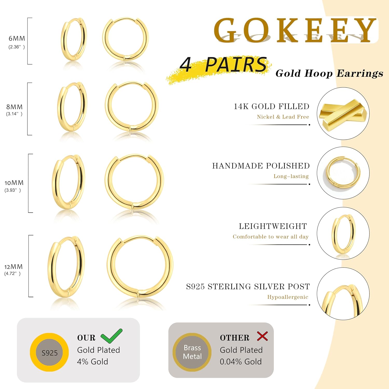 - ใHypoallergenicใOur small gold hoop earring’s metals are lead-free, nickel-free, rust-proof, non-fading, no worry about the irritation and rashes.
