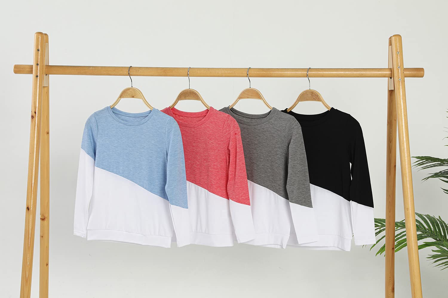 Ebifin Girls Casual Short/Long Sleeve T Shirts Kids Loose Soft Striped Color Block Tunic Tops, Tees Blouses Size 4-15 Years by Ebifin