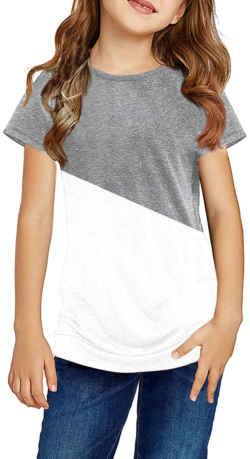 About Ebifin Girls Casual Short/Long Sleeve T Shirts Kids Loose Soft Striped Color Block Tunic Tops, Tees Blouses Size 4-15 Years