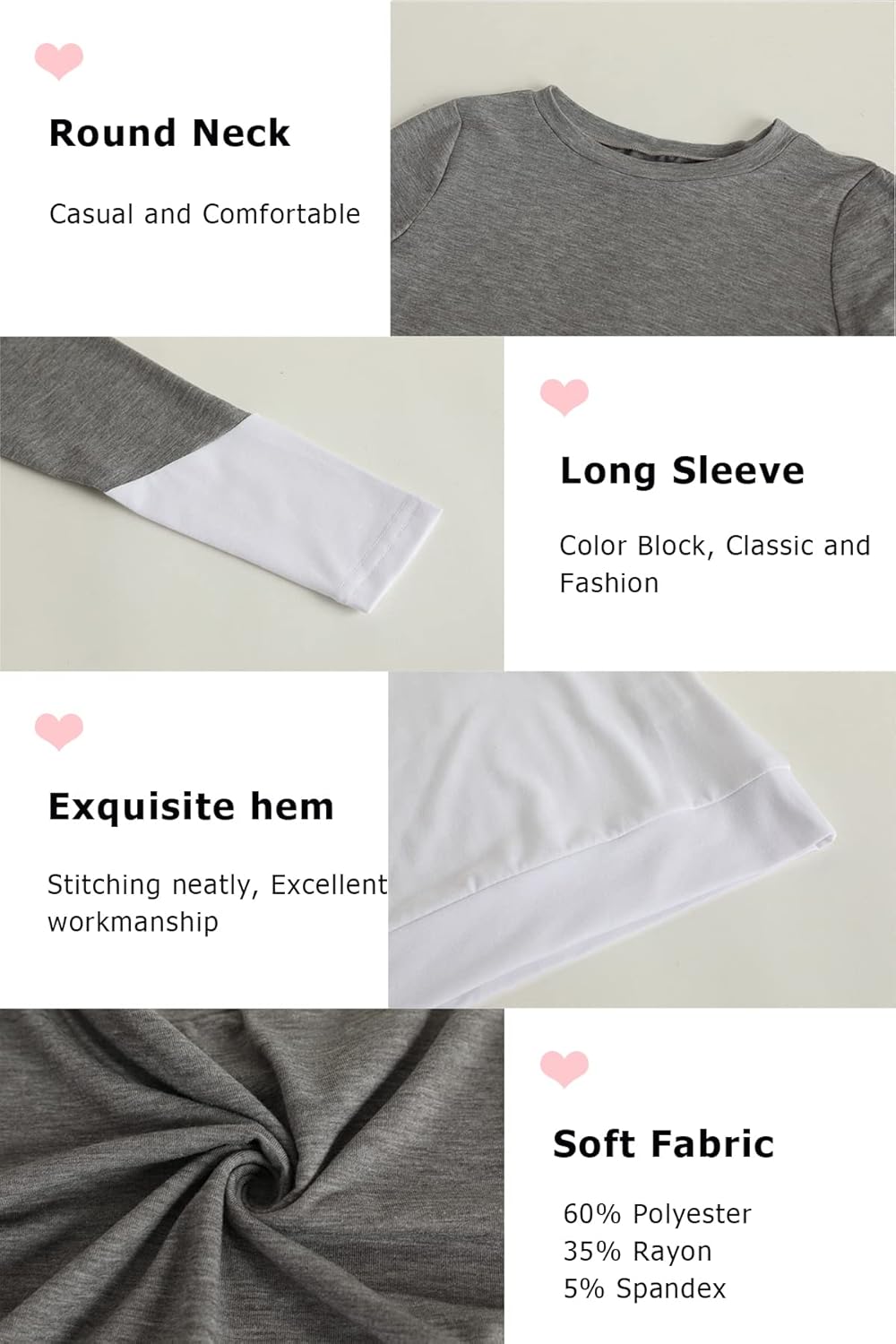 About Ebifin Girls Casual Short/Long Sleeve T Shirts Kids Loose Soft Striped Color Block Tunic Tops, Tees Blouses Size 4-15 Years
