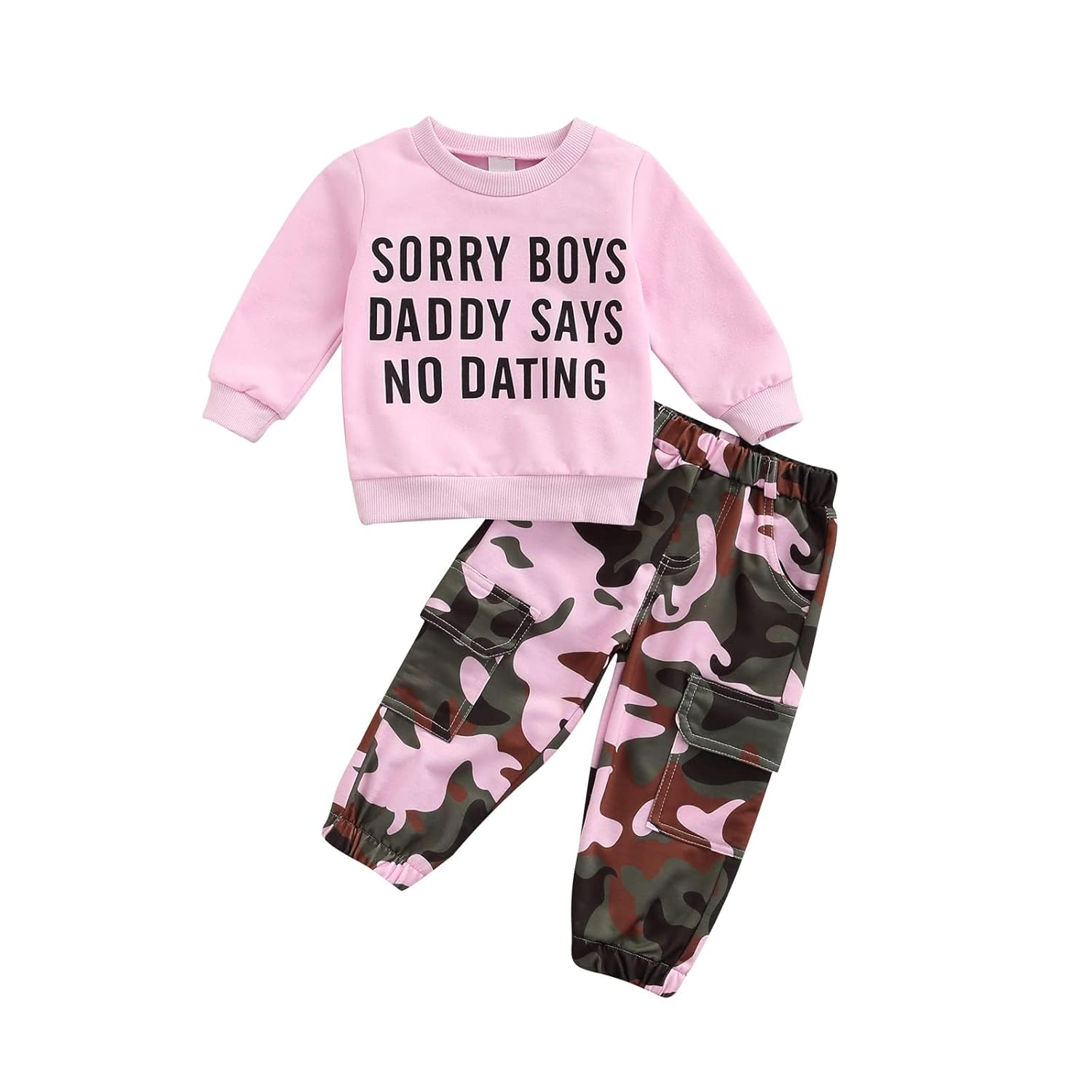 - โฅSuitable age: โSORRY DADDY YOU NOW HAVE TWO BOSSESโ Girls pink sweatshirt,camouflage cargo pants set suitable for 1-2T, 2-3T, 3-4T, 4-5T, 5-6years toddler girls.