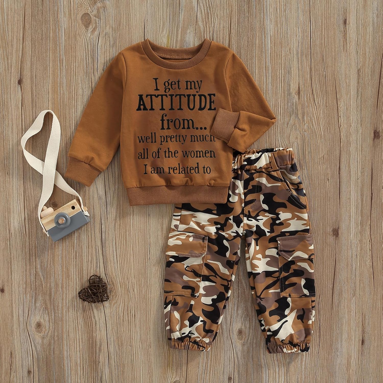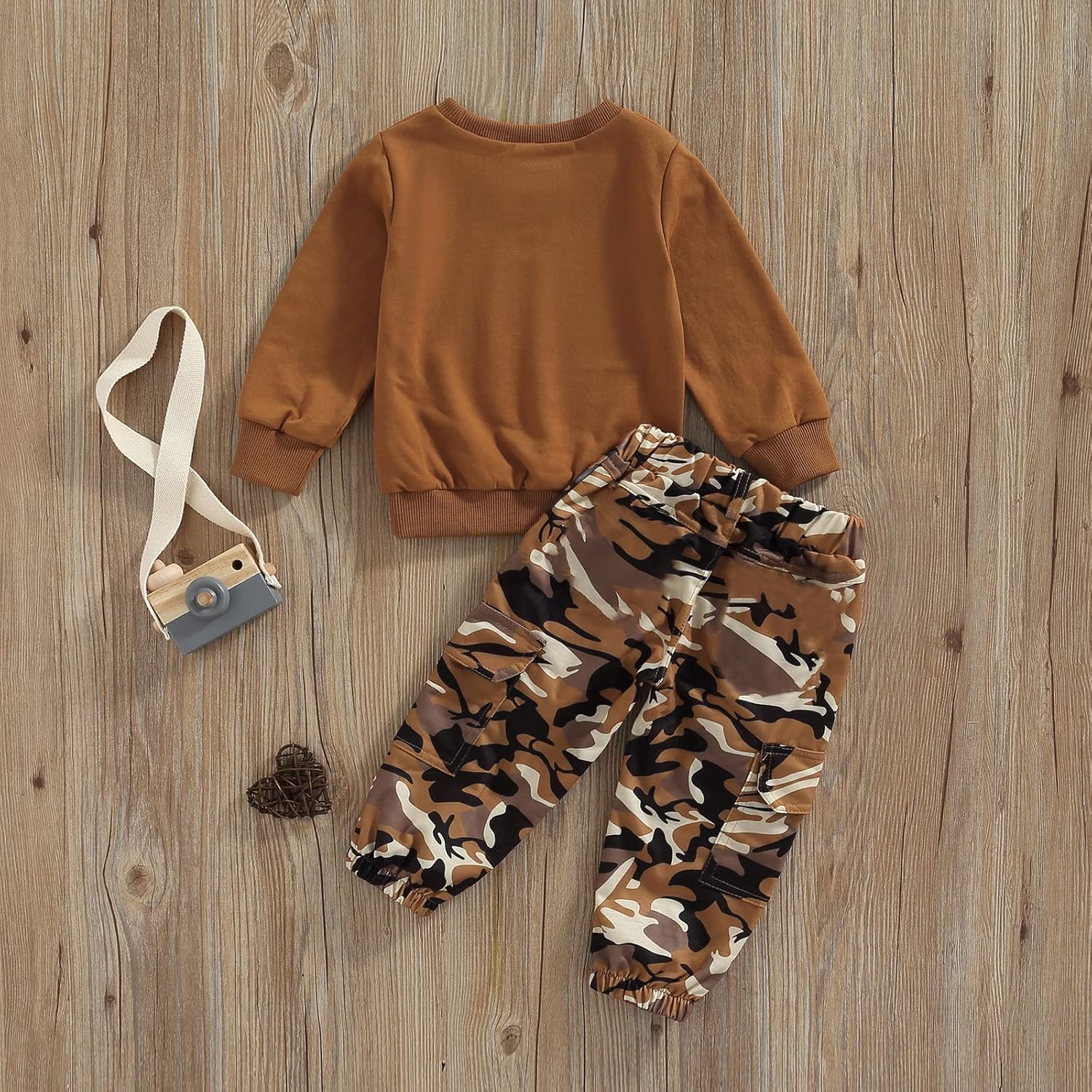 - ♥Design: Baby girl fall outfits, pullover sweatshirt features letter print, long sleeves and a round neck. Trousers feature camouflage print and pockets.