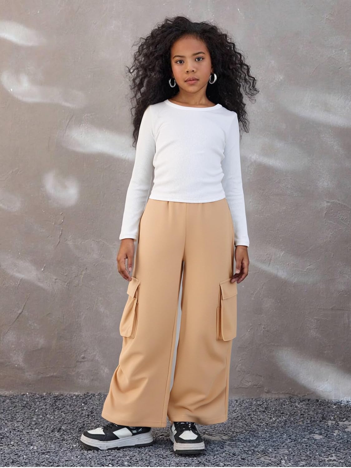 - 👖 Trendy Yet Practical – The ruched long sleeve tee pairs perfectly with the high-waisted cargo joggers, creating a cute outfit for girls who love both fashion and function.
