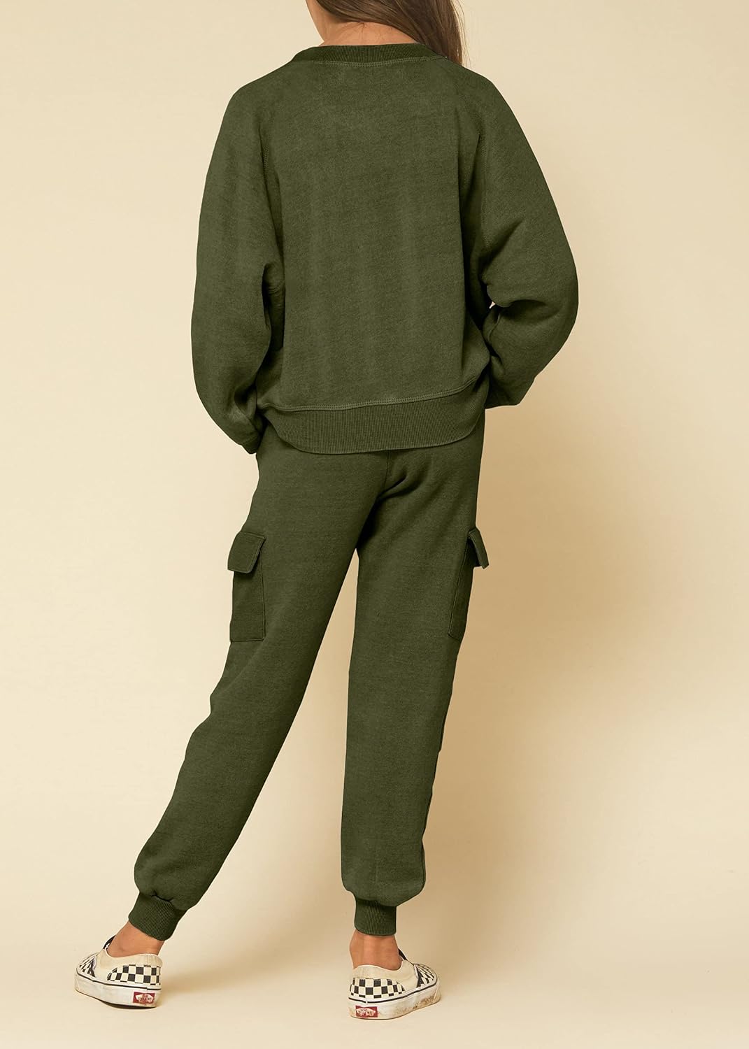 - Package include: a casual long sleeve sweatshirt and a loose sweatpant with pocket