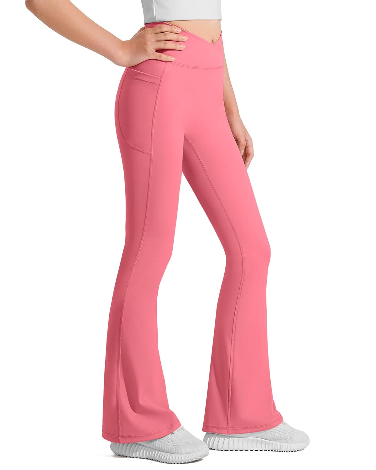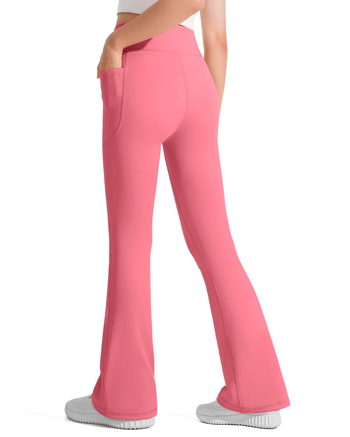 - Girls Flare Leggings: The girls leggings features boot cut, bell bottom, and high-waisted design, these flare yoga pants provide a flattering fit for all body types and elongates teen girls legs. And no front seam design can avoid awkward lines without the adolescent troubles.