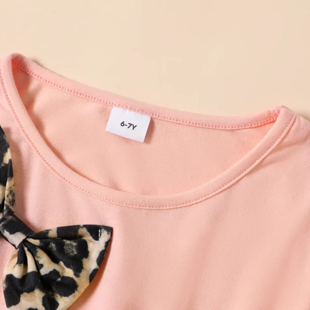 - FASHION DESIGN: Ruffle and solid color top design with a cute bow, adorable and fashionable. We are sure your little girl will loves these Floral/Leopard/Sunflower print pant set and she won’t want to take it off.