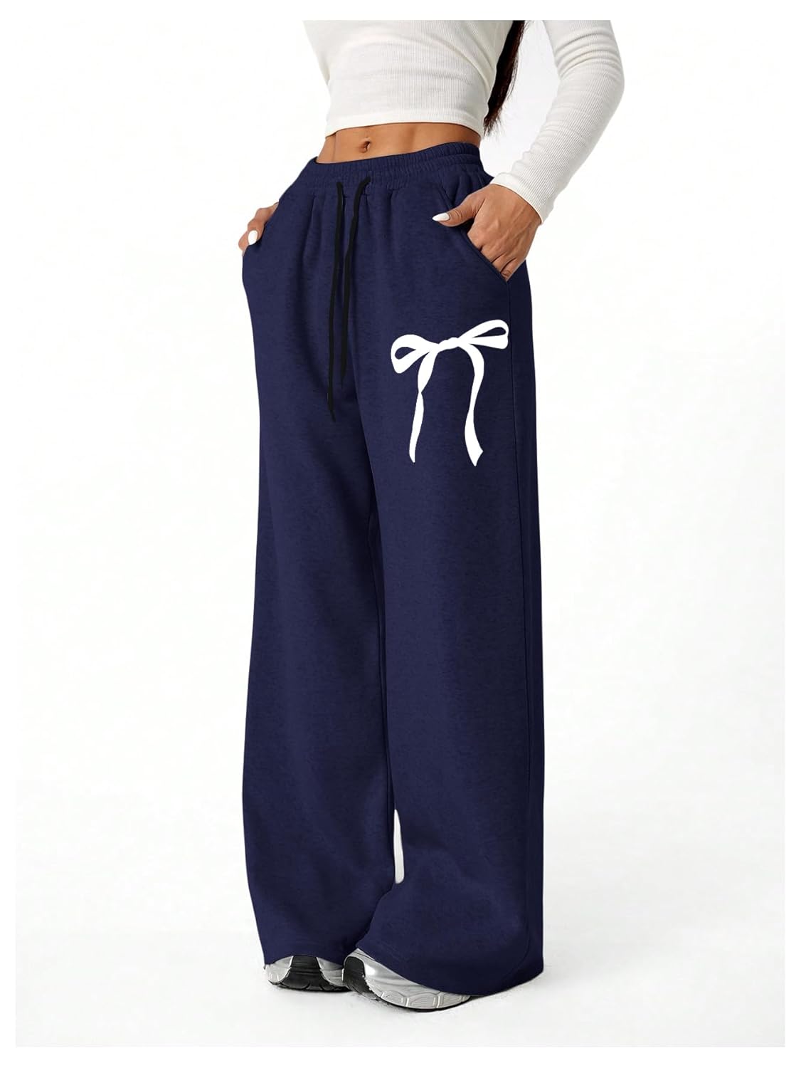 - Casual Sweat Pants, Sport Workout Pants, Bow Knot, Elastic Drawstring Leg, Slant Pockets, Straight Leg