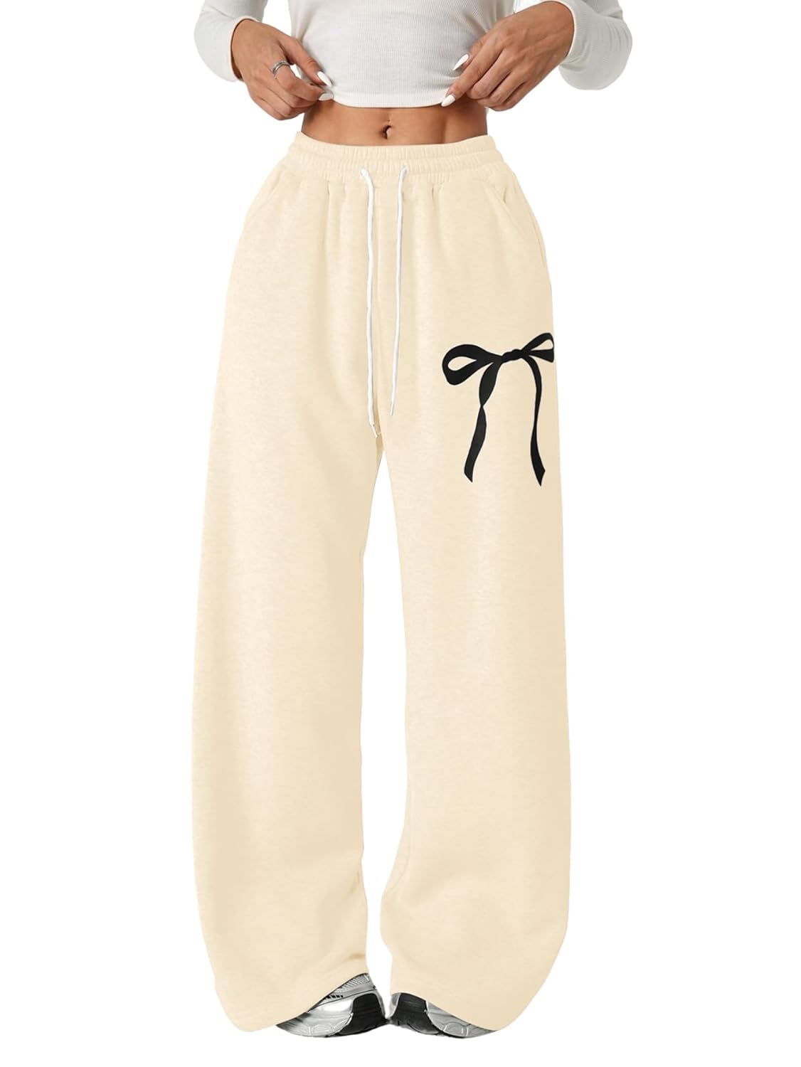 Verdusa Girl’s Bowknot Baggy Sweatpants Lightweight Straight Leg Athletic Pants with Pockets by Verdusa