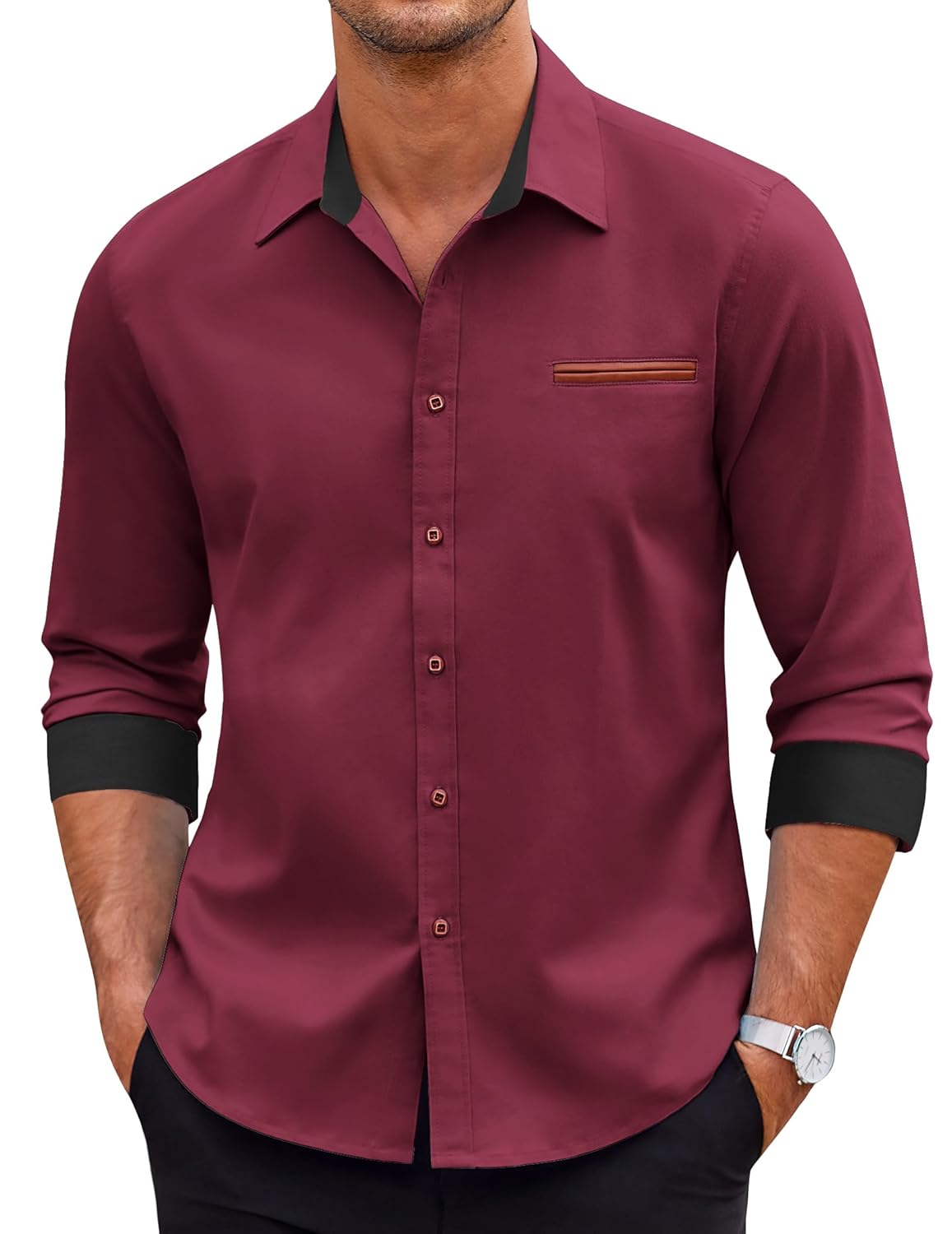 - TRENDY DESIGN — Turn down collar, inner contrast design shirts/ solid color shirts / long sleeve button dress shirt for fashion men