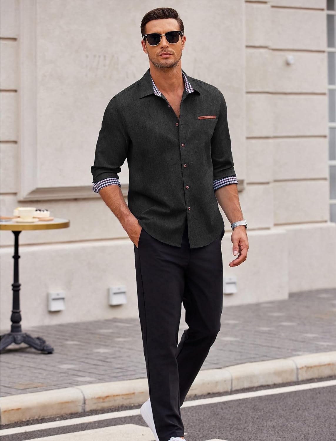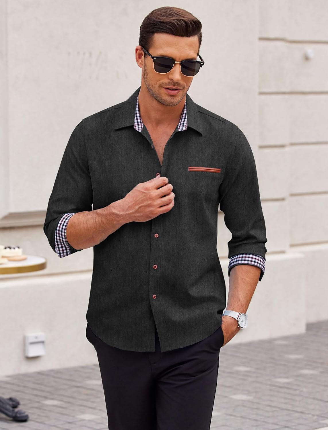 Photos: COOFANDY Men’s Casual Dress Shirt Button Down Shirts Long-Sleeve Plaid Collar Denim Work Shirt by COOFANDY