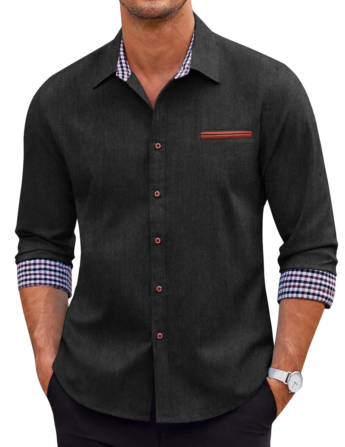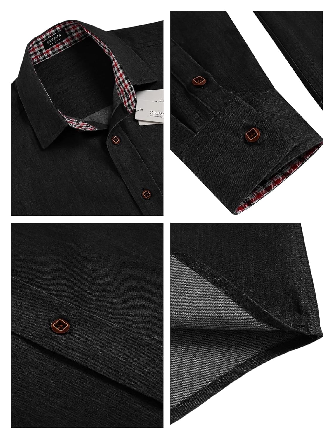 About COOFANDY Men’s Casual Dress Shirt Button Down Shirts Long-Sleeve Plaid Collar Denim Work Shirt