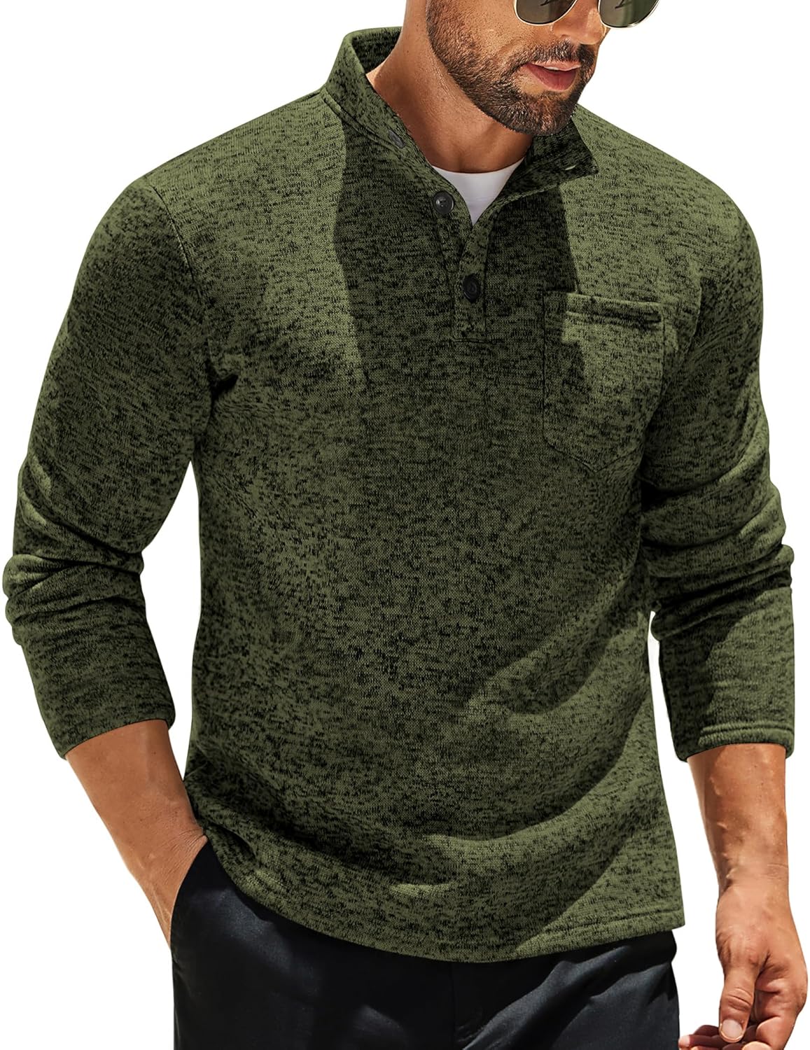 Photos: COOFANDY Men’s Casual Henley Pullover Sweatshirt Thermal Fleece Slim Fit Sweater by COOFANDY