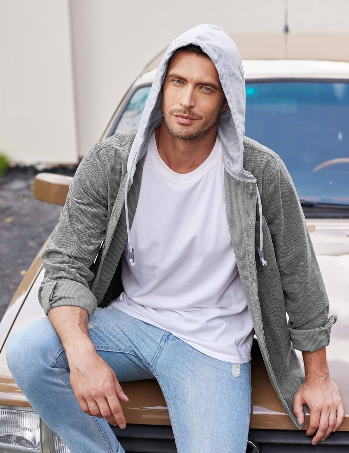 Photos: COOFANDY Men’s Corduroy Shirt Jackets Long Sleeve Button Down Casual Stylish Hooded Shacket Jacket with Pocket by COOFANDY