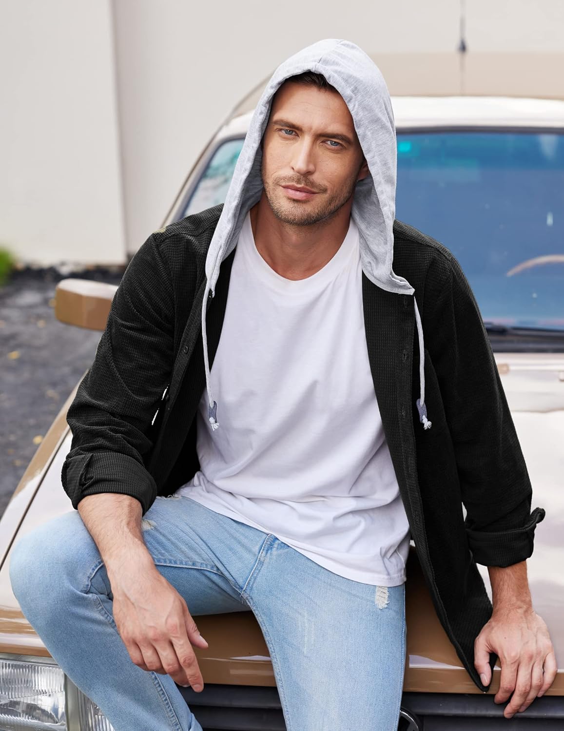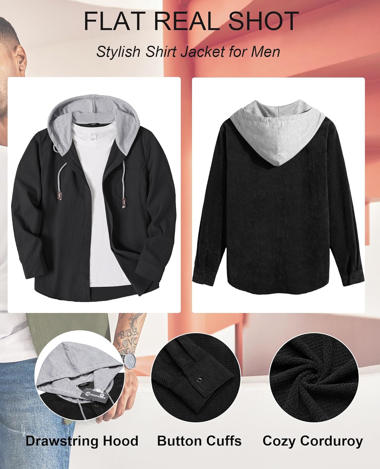 Photos: COOFANDY Men’s Corduroy Shirt Jackets Long Sleeve Button Down Casual Stylish Hooded Shacket Jacket with Pocket by COOFANDY