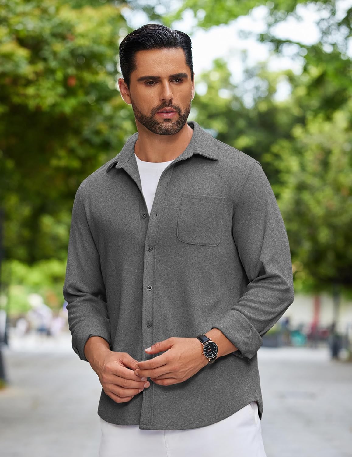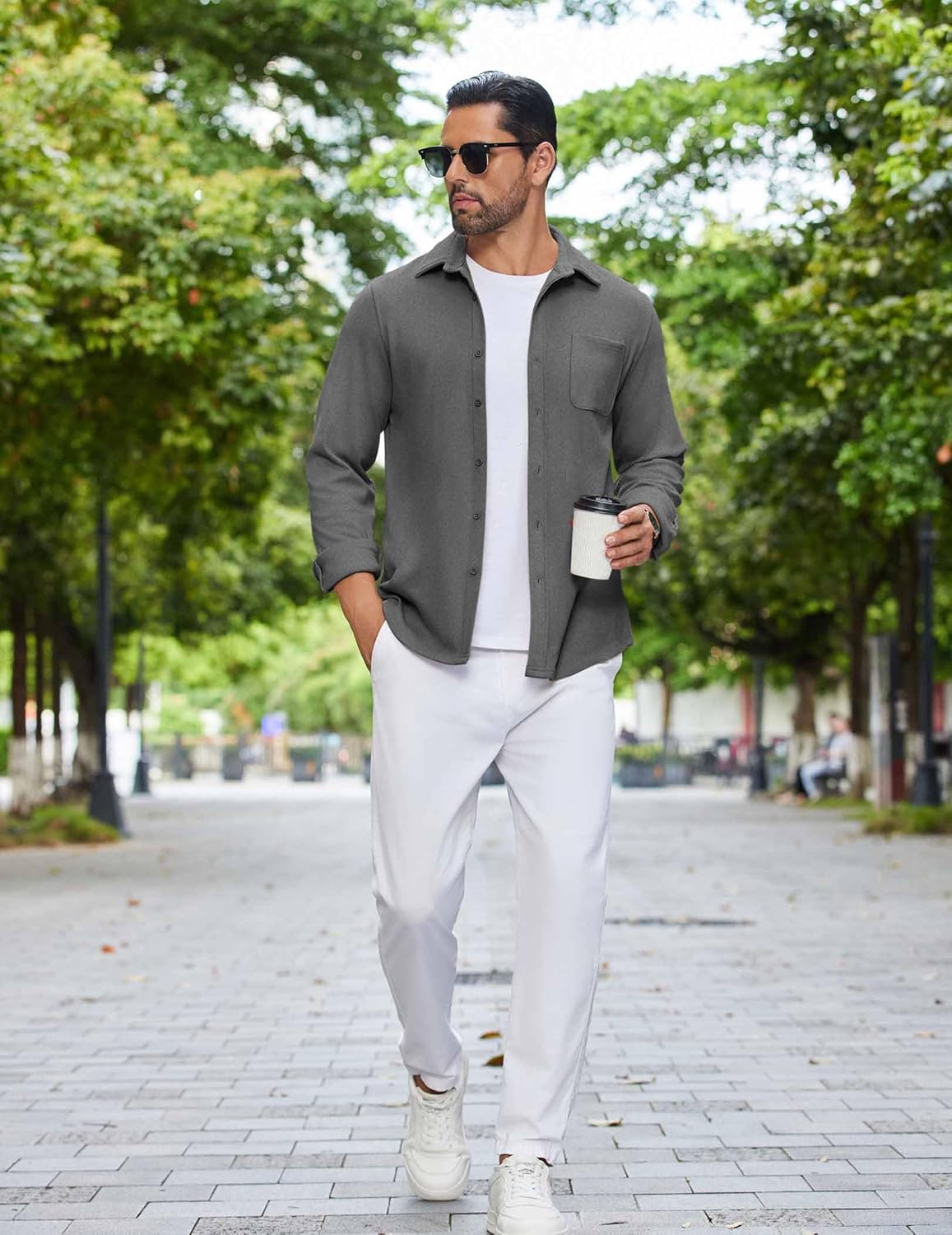 - 【Occasion】Men Button Down Shirt Jacket suitable for work or any casual occasion, perfect for daily wear, casual outing, work, street, date, wedding, travel etc. A great gift for your family and friends.