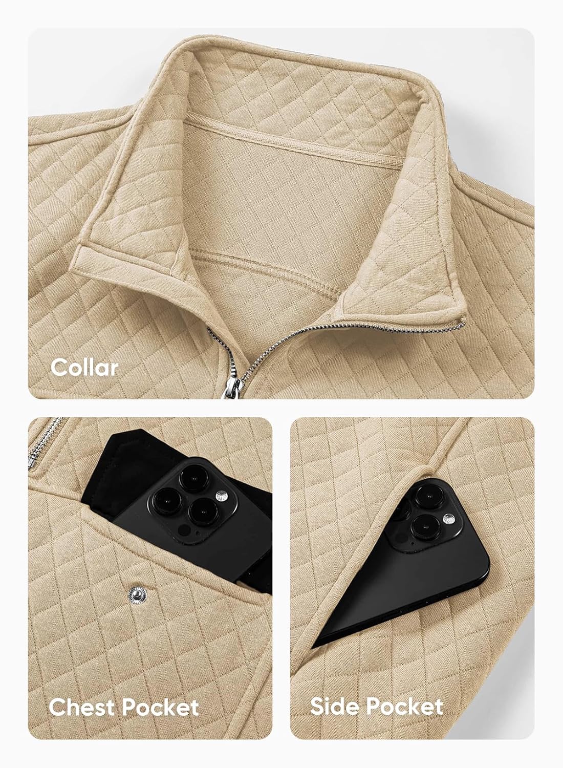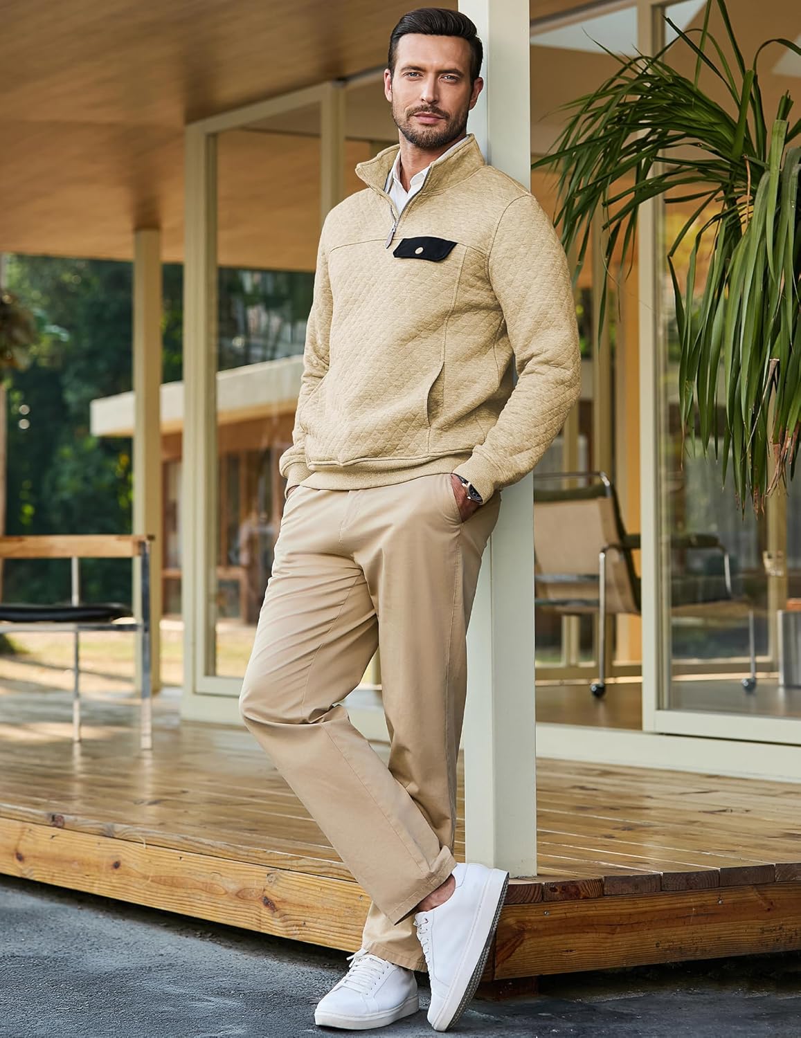 Photos: JMIERR Men’s Quilted Sweatshirt Casual Long Sleeve Outdoor Stand Collar Quarter-Zip Pullover Sweatshirts by JMIERR