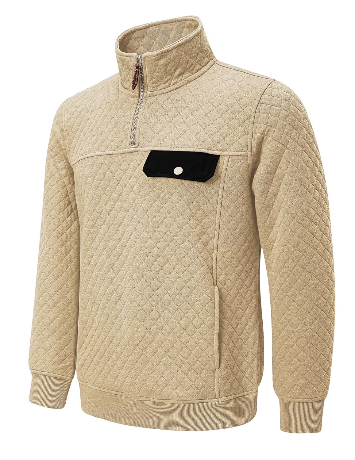 About JMIERR Men’s Quilted Sweatshirt Casual Long Sleeve Outdoor Stand Collar Quarter-Zip Pullover Sweatshirts