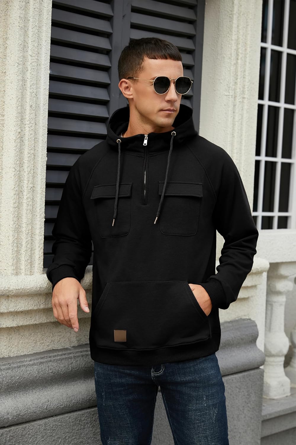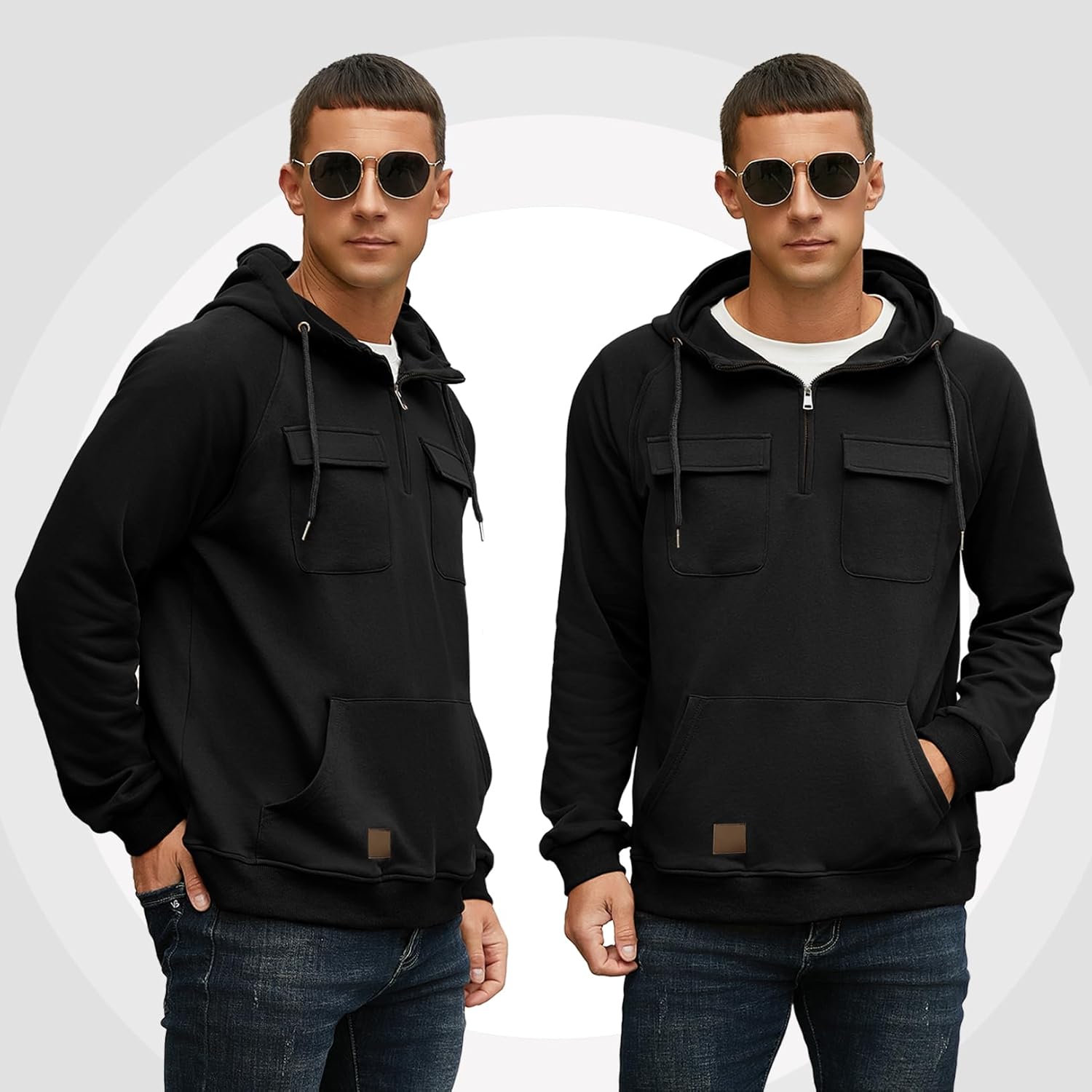 - 2024 New Design : Quarter-Zip hooded sweatshirts with 2 practical cargo pockets and a kangaroo pocket, which allows you to hold your cell phone, wallet, keys, cards, etc. Easy to fit different body types, ยผ zip front makes for easy layering, cargo hoodies are more stylish than the classic sweatshirts.