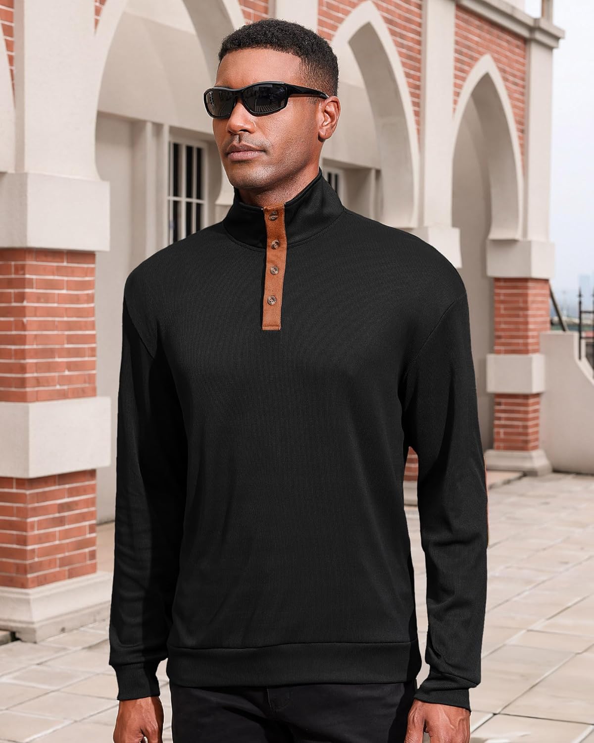 About Lexiart Men’s Casual Corduroy Sweatshirt Long Sleeve Thermal Stand Collar Button Pullover Sweatshirts