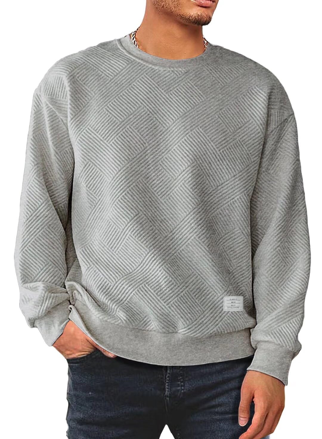 About Men’s Crewneck Sweatshirts Soild Color Geometric Texture Long Sleeve Casual Pullover Shirt