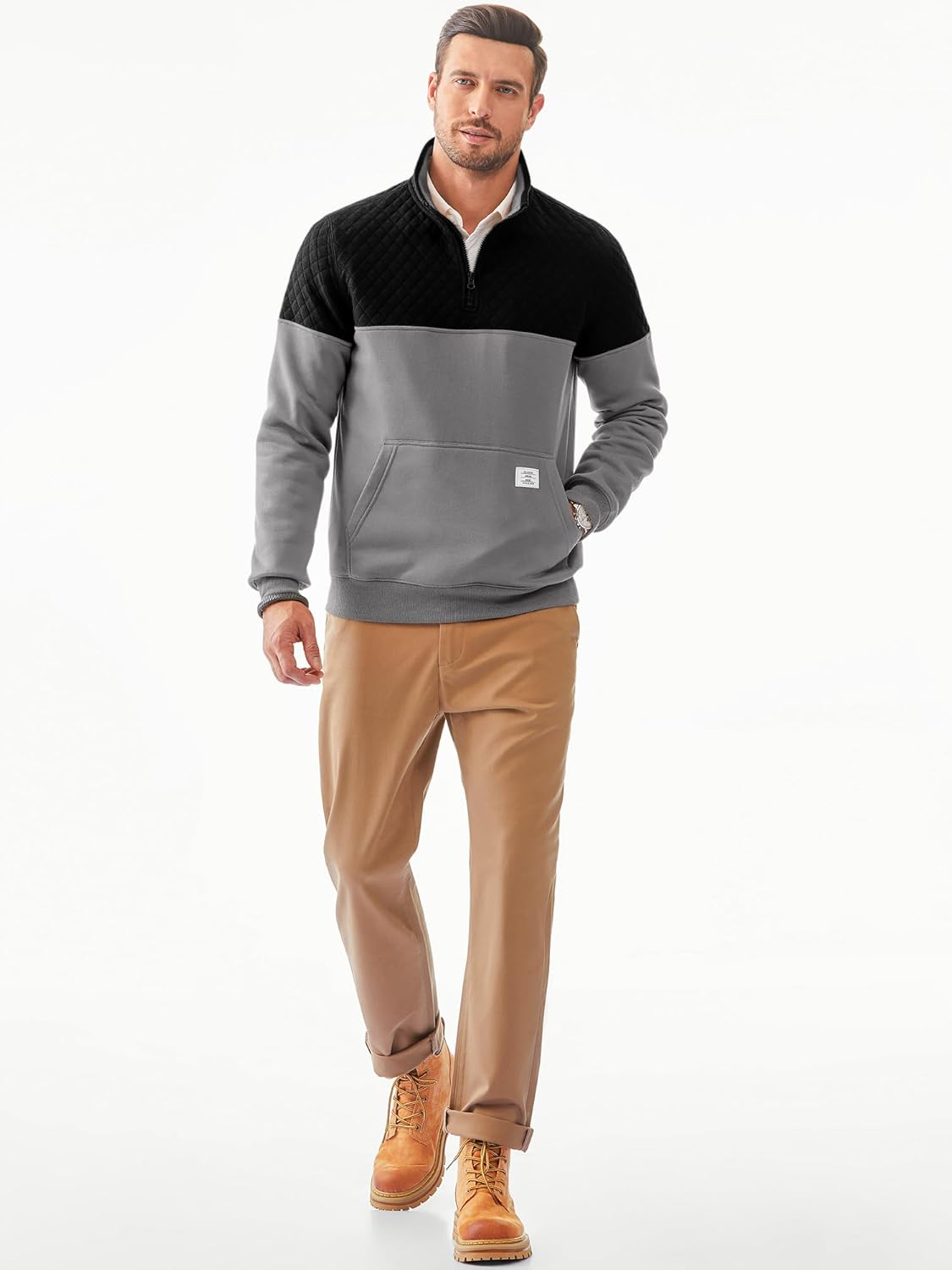 About Men’s Mock Neck Sweatshirts Quarter Zip Quilted Sweater Color Block Long Sleeve Casual Pullover