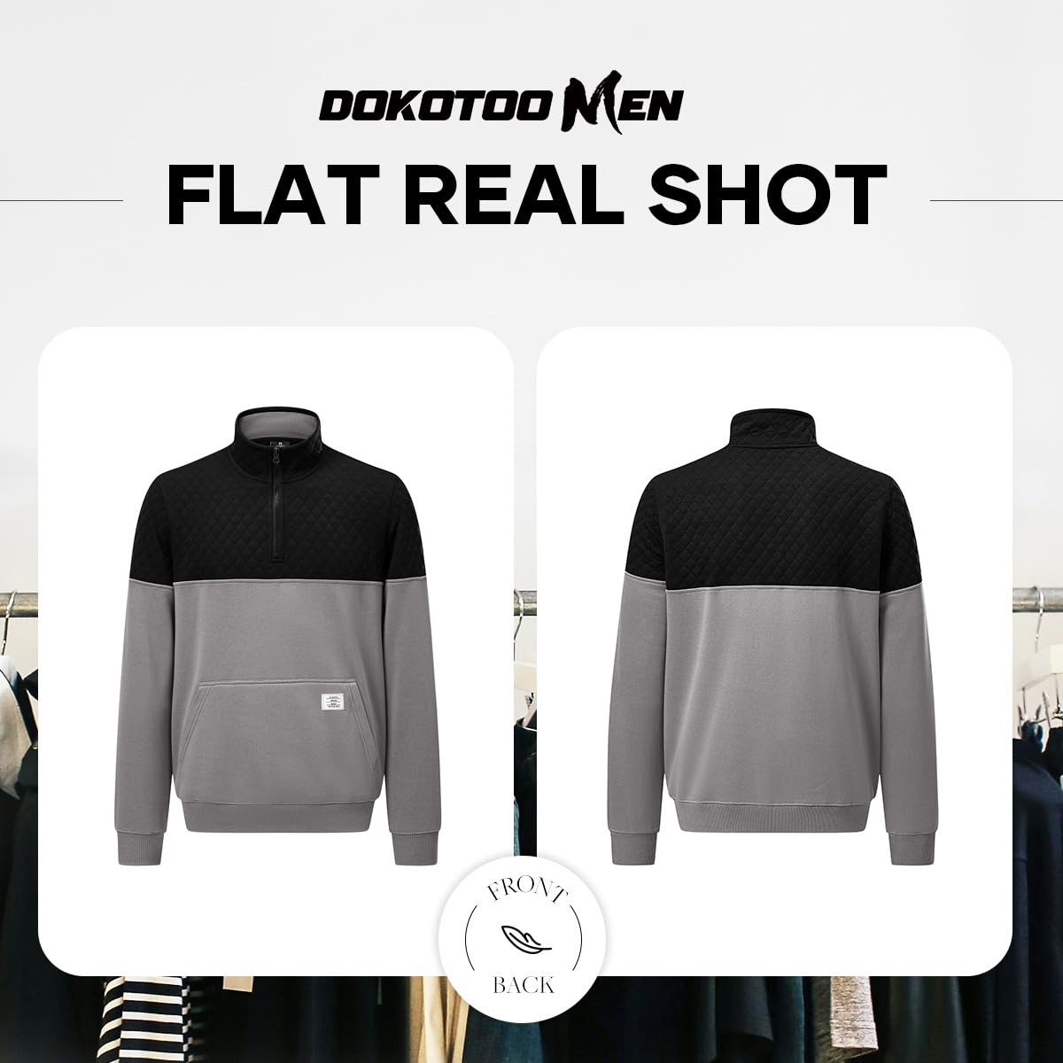 Photos: Men’s Mock Neck Sweatshirts Quarter Zip Quilted Sweater Color Block Long Sleeve Casual Pullover by Dokotoo Men