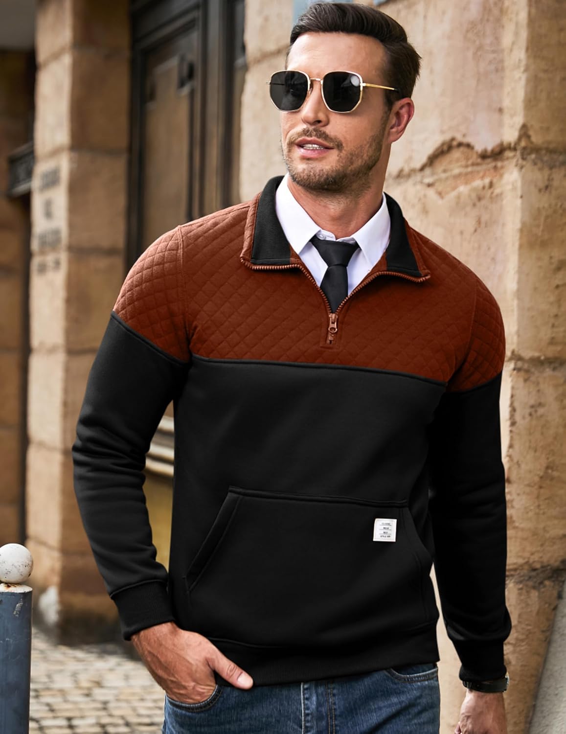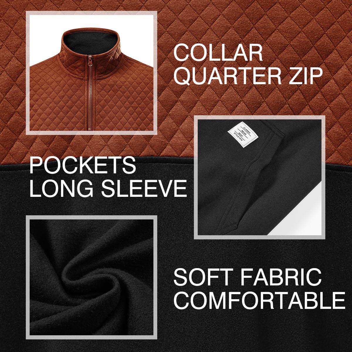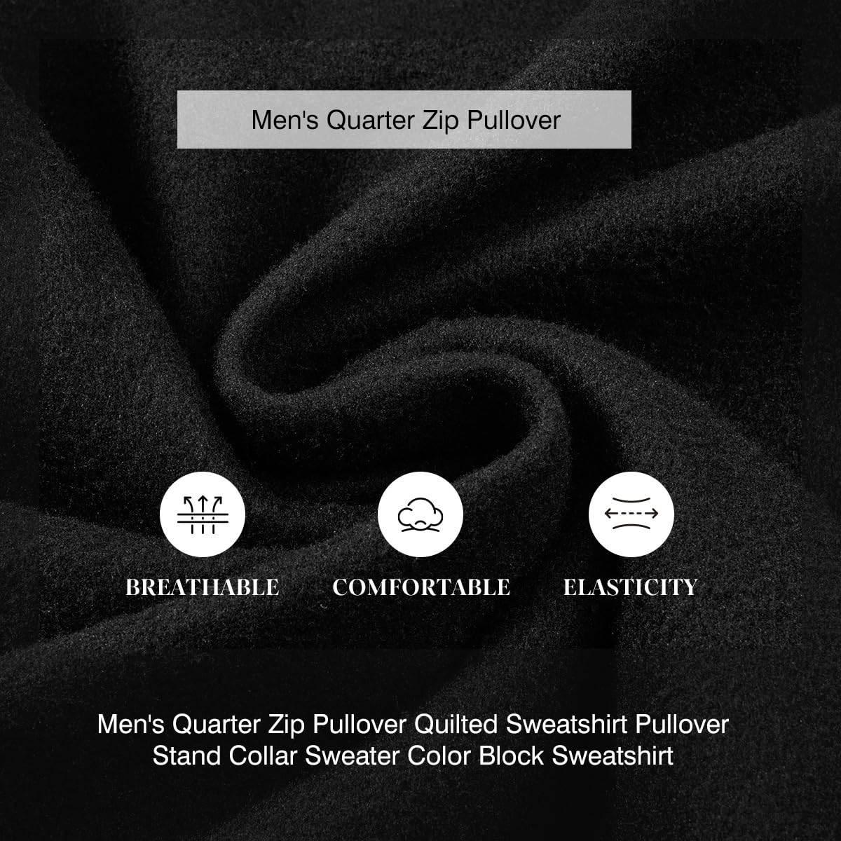 About Men’s Mock Neck Sweatshirts Quarter Zip Quilted Sweater Color Block Long Sleeve Casual Pullover