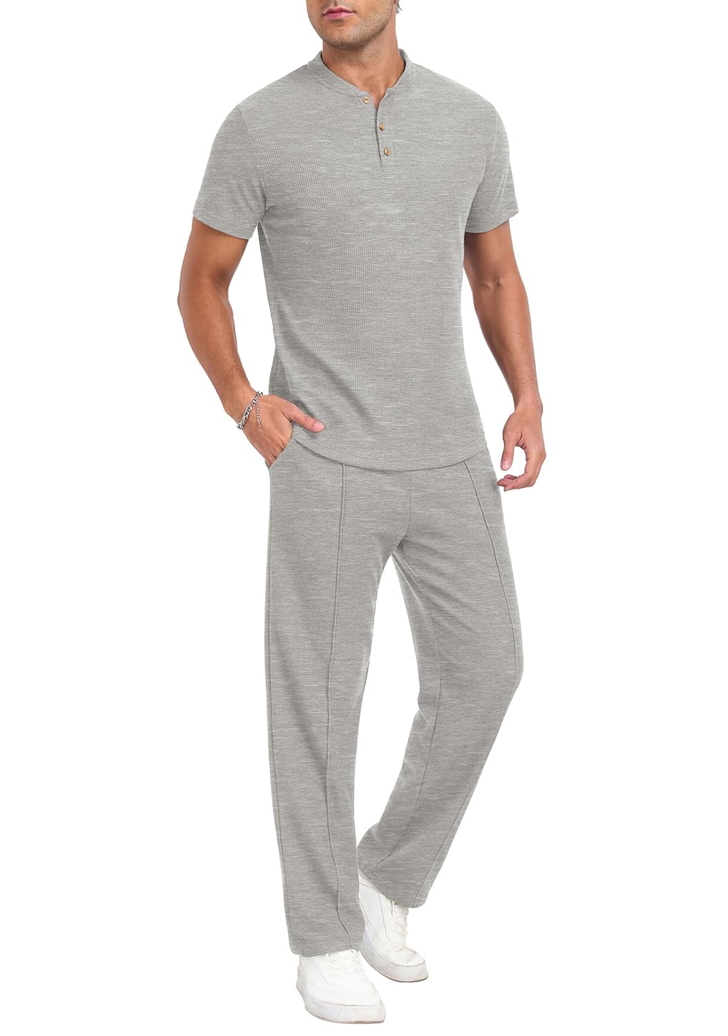 Top Pick โ discover the PrinStory Men’s Short Sleeve Outfits Waffle Knit Henley Shirt and Pants Set Casual 2 Pieces Summer Tracksuits with Pockets by PrinStory, built for performance and designed for life in the United States.