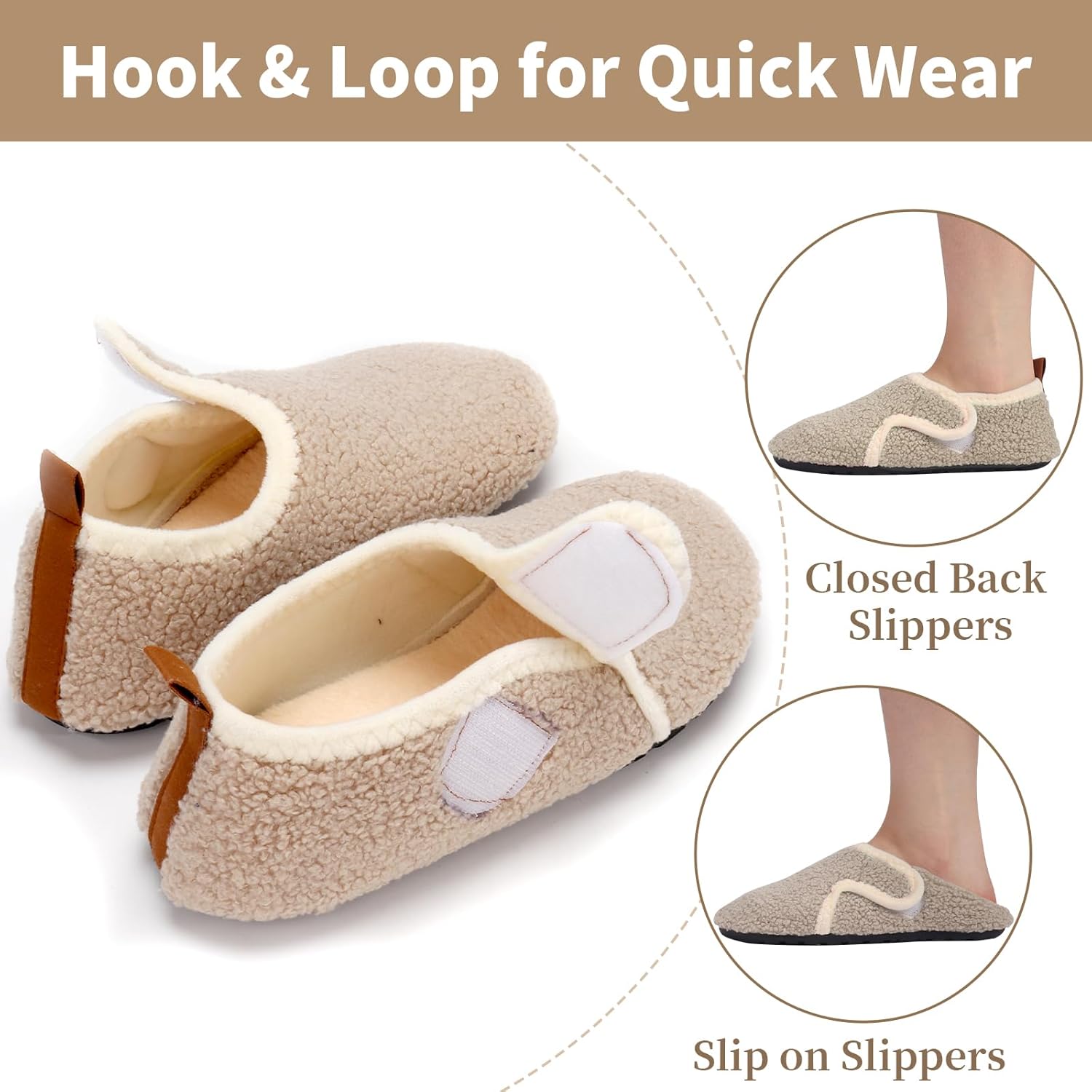- Slip on Design: Slippers for women have 2 wearing ways, step on like slippers or heel closed back like loafers, adjustable hook and loop offers a snug fit to hug your feet, easy to wear on and off
