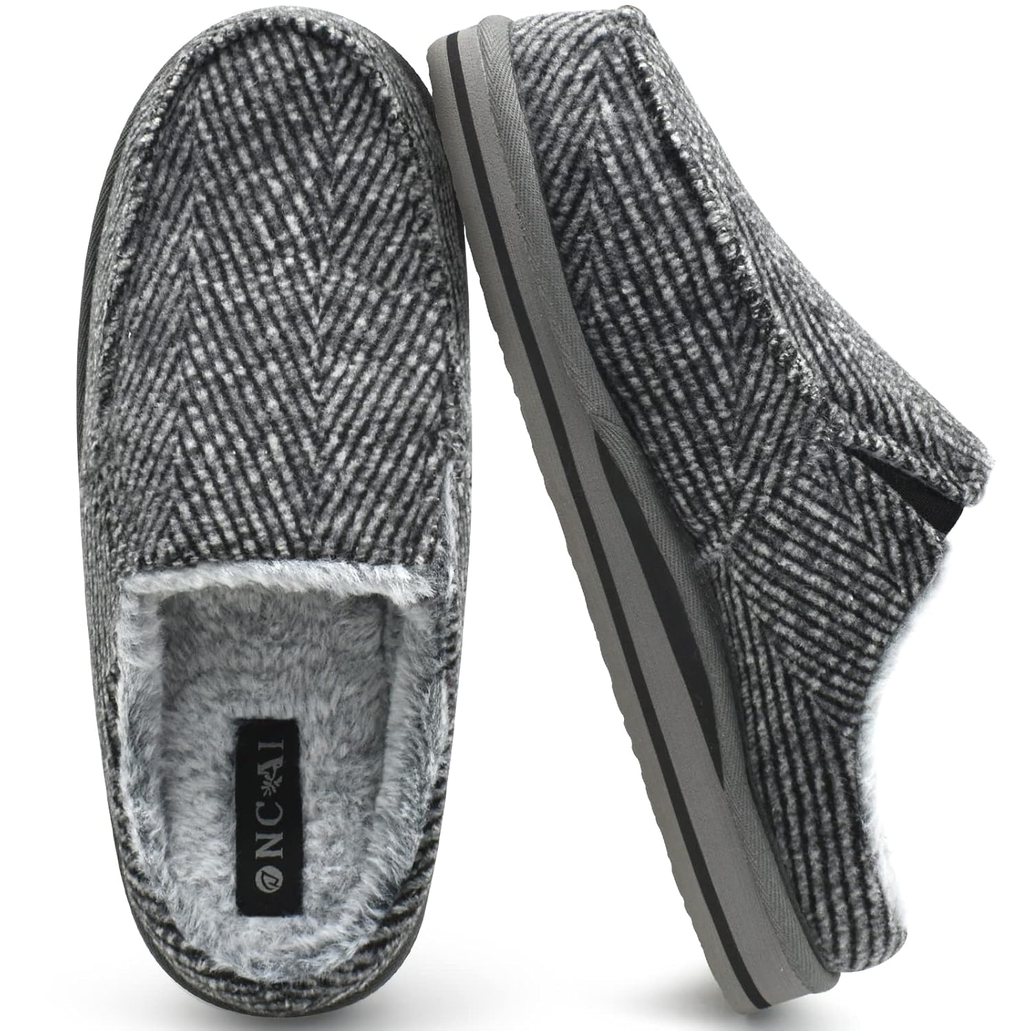 7397 reviews for ONCAI Mens Slippers with Arch Support Stripe Faux Fur Cotton-Blend High-Density Memory Foam Warm House Slippers for man Slip-on Indoor Outdoor Rubber Sole Size 7-16 by ONCAI