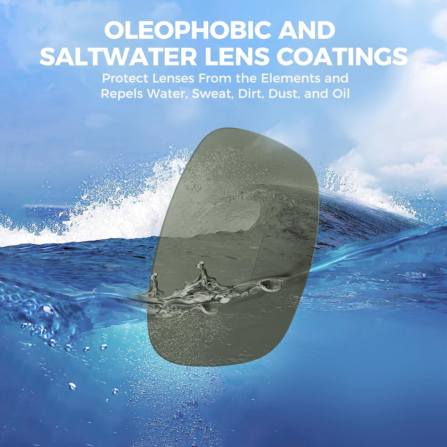 - POLARIZED BIFOCAL PC LENSES WITH OLEOPHOBIC COATINGโThe Waccamaw sunglasses features 1.8mm polarized lenses with integrated magnifiers available in x1.5, x2.0, and x2.5, providing close vision while reducing glare. Unlike TAC lenses, the polycarbonate lenses offer superior impact resistance and enhanced optical clarity, ideal for activities like fishing and reading. The oleophobic coating protects the lenses from dirt, dust, oils, and residues, keeping them cleaner for longer.