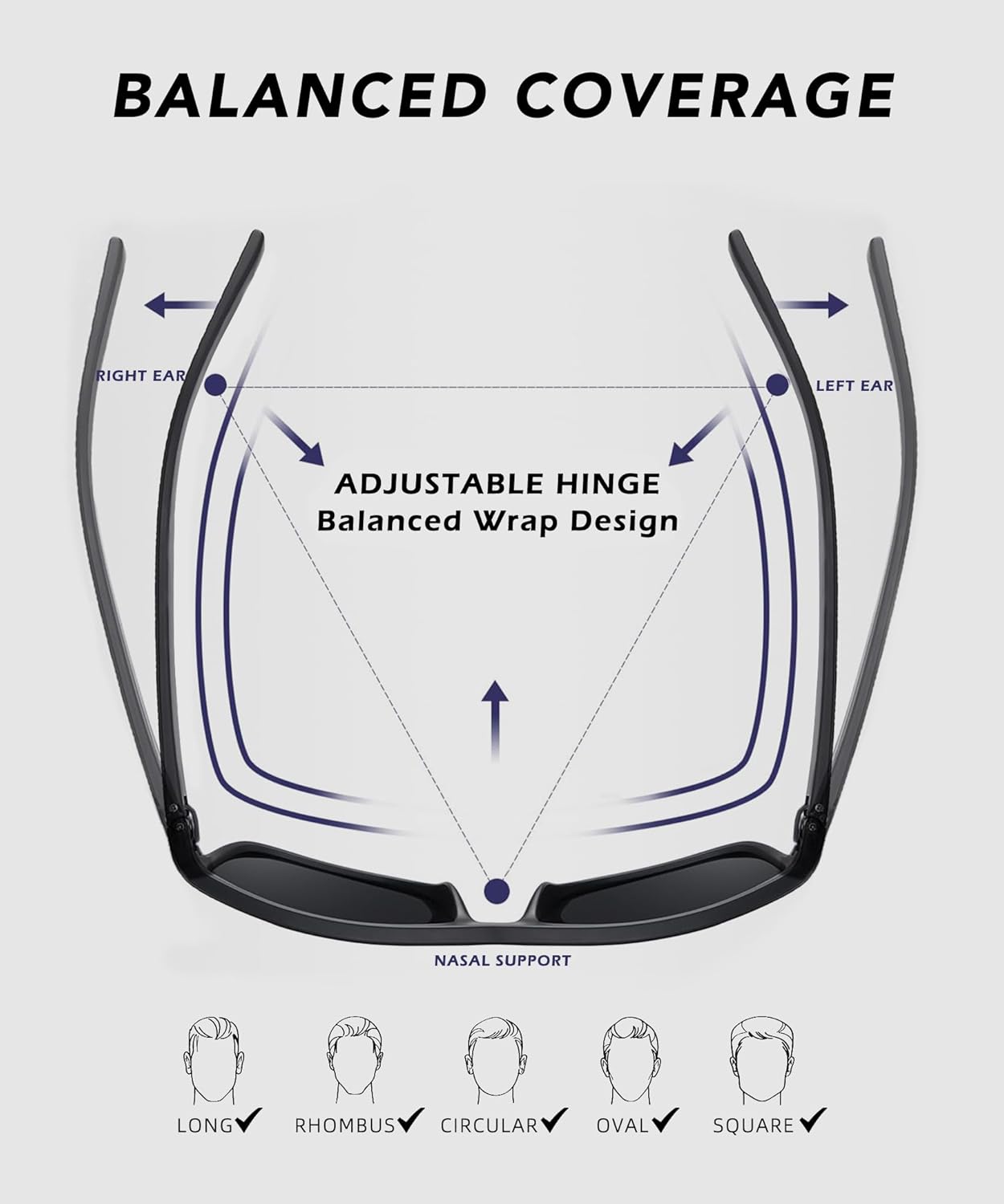 - Advanced UV400 Polarized Lens: QALLY men sunglasses feature advanced lenses that not only reduce glare but also minimize eye strain effectively. The specialized UV400 protection coating ensures comprehensive shielding against harmful UVA and UVB rays, making polarized sunglasses ideal for protecting your vision under bright conditions