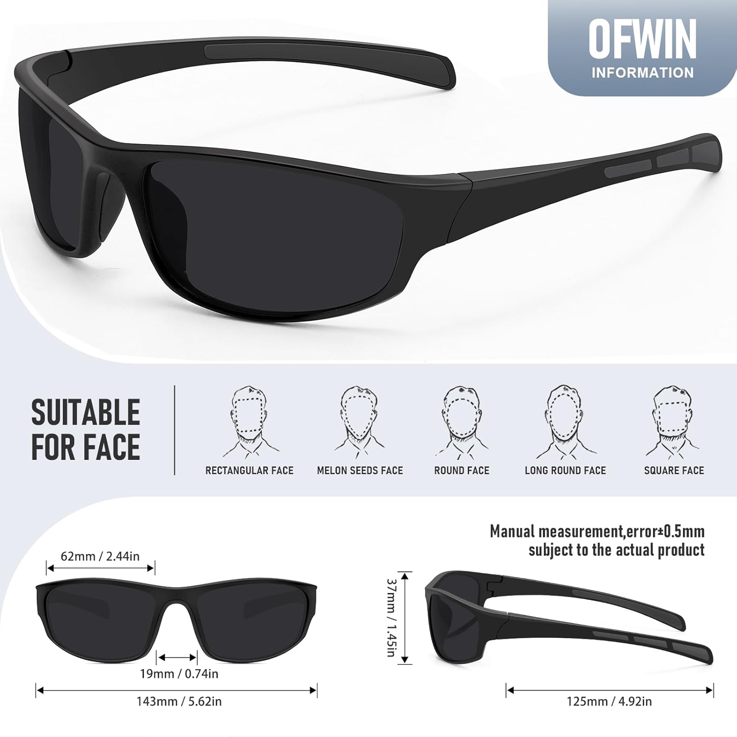 - UV PROTECTION: Ofwin UV400 protection sunglasses provide exceptional sun protection, ensuring your eyes stay shielded from harmful UV rays. Whether you’re on the beach,hiking,driving,fishing,or cycling,these sunglasses are designed to keep your vision clear and your eyes safe.