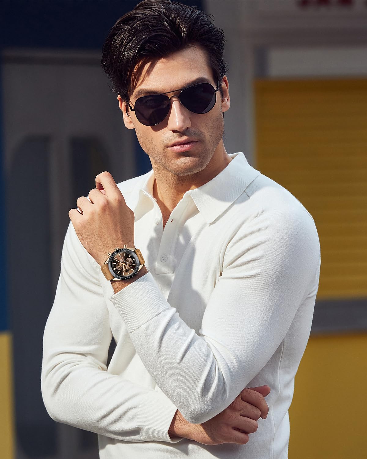 - QUALITY AND COMFORTABLE: High quality imported quartz movement to provide high stability and accurate timing. 304 steel case with mineral glass, which greatly improves the wear resistance and scratch resistance. The brown leather strap watch for men not only looks elegant and stylish, but is also comfortable and soft to wear. This men’s wrist watches will stand the test of style and last a lifetime if properly maintained.