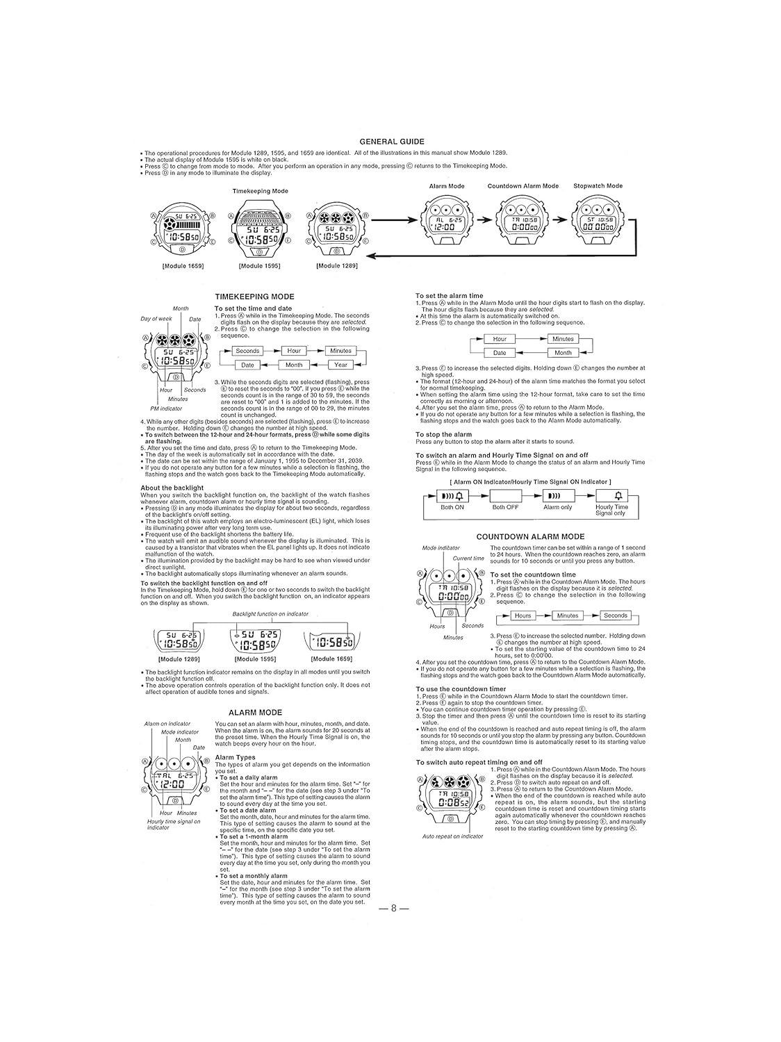 - Electro-Luminescent Backlight: The blue-green EL backlight with afterglow ensures clear visibility of the time, day, and date, even in complete darkness.