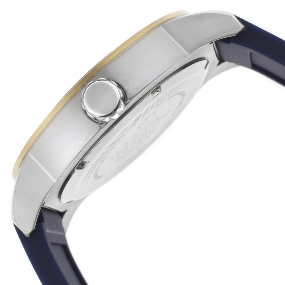 - Stainless steel case 45mm diameter x 12.5mm thick; Blue and white dial