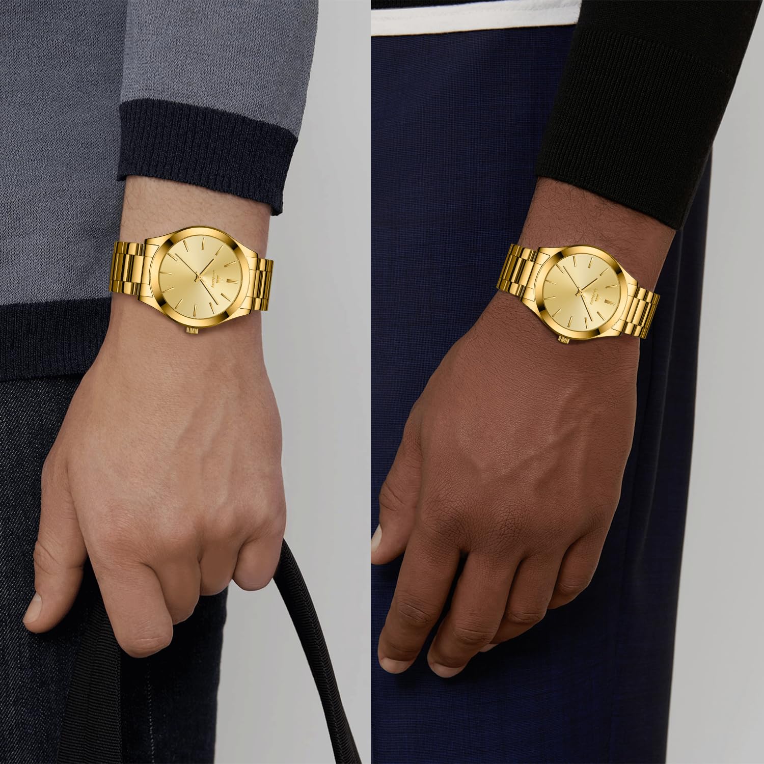 - โใ STAINLESS STEEL WATCHES FOR MENใElegant mens wrist watches comes with a soft and comfortable stainless steel case and strap, suitable for daily wear, non-oxidizing, easy to maintain. Foldover clasp with push button prevents accidental opening and falling, come with tool for adjustment different wrist sizes.