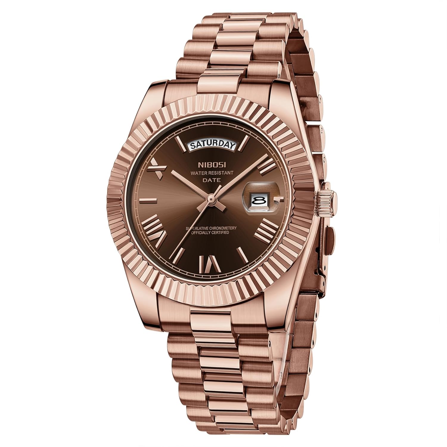 - [Classic Men’s Watch] The NIBOSI men’s analog watch features a 1.57-inch (40 mm) dial with day-date calendar display. Stainless steel construction and timeless design transition from business meetings to casual events, meeting modern men’s style needs