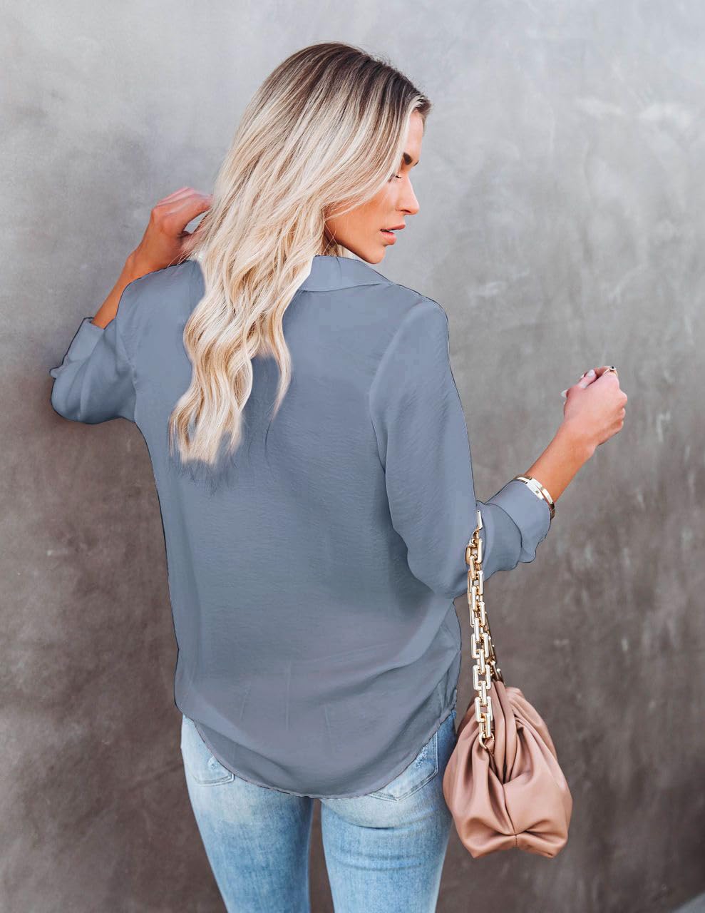 - Features: Sexy v-neckline, button up, cuffed sleeve, long sleeve. Classic shirt collar, basic plain women’s shirts