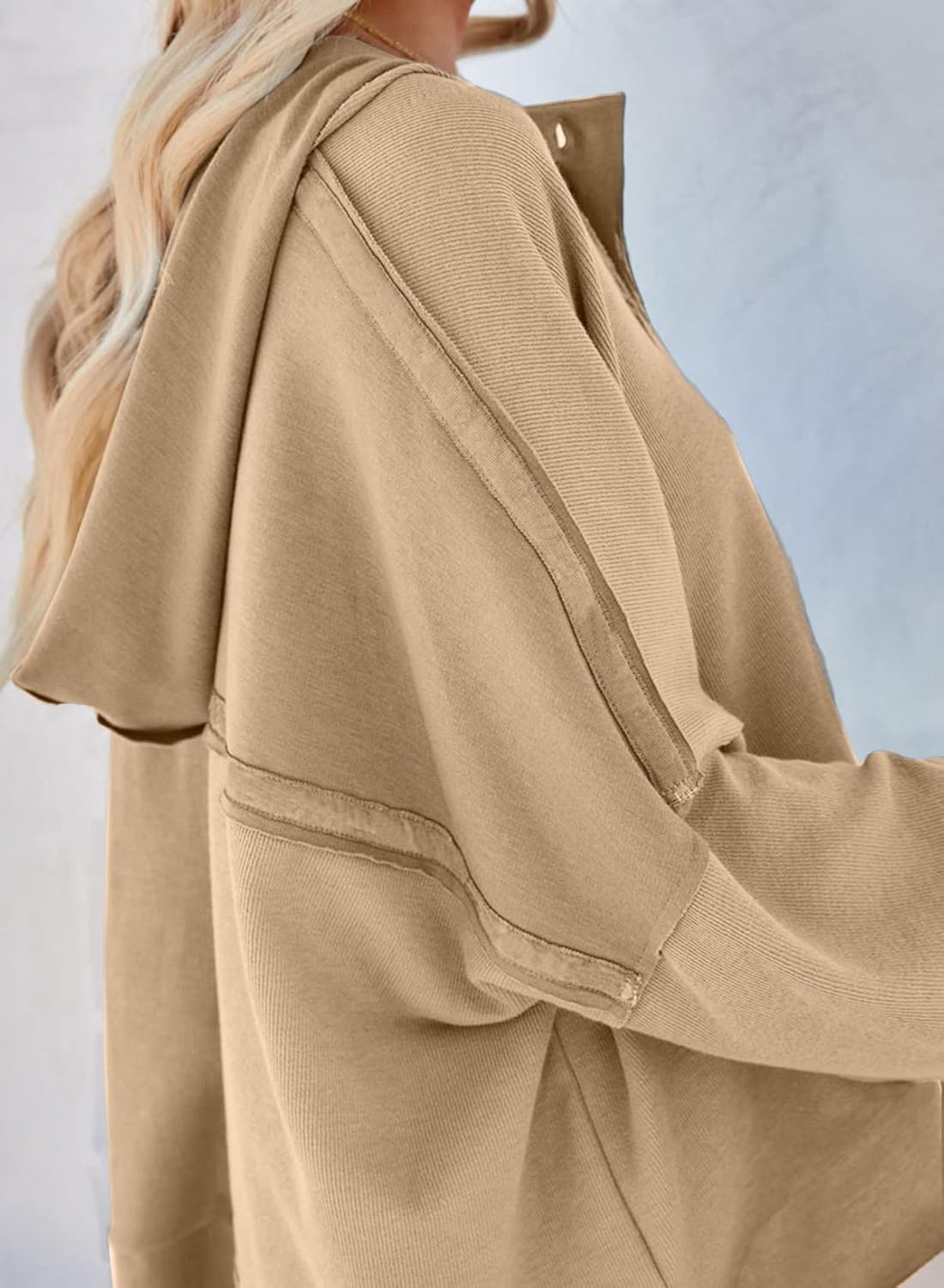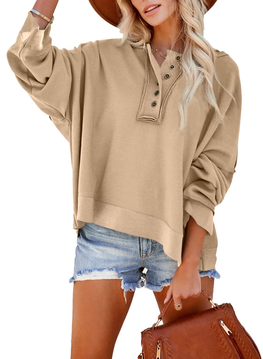 - Features:long sleeve, button down v neck, tops pullover, relaxed fit, casual hooded sweatshirt for women, ribbed knit design, trendy and dressy tops for women, casual loose style,women’s fashion hoodies & sweatshirts