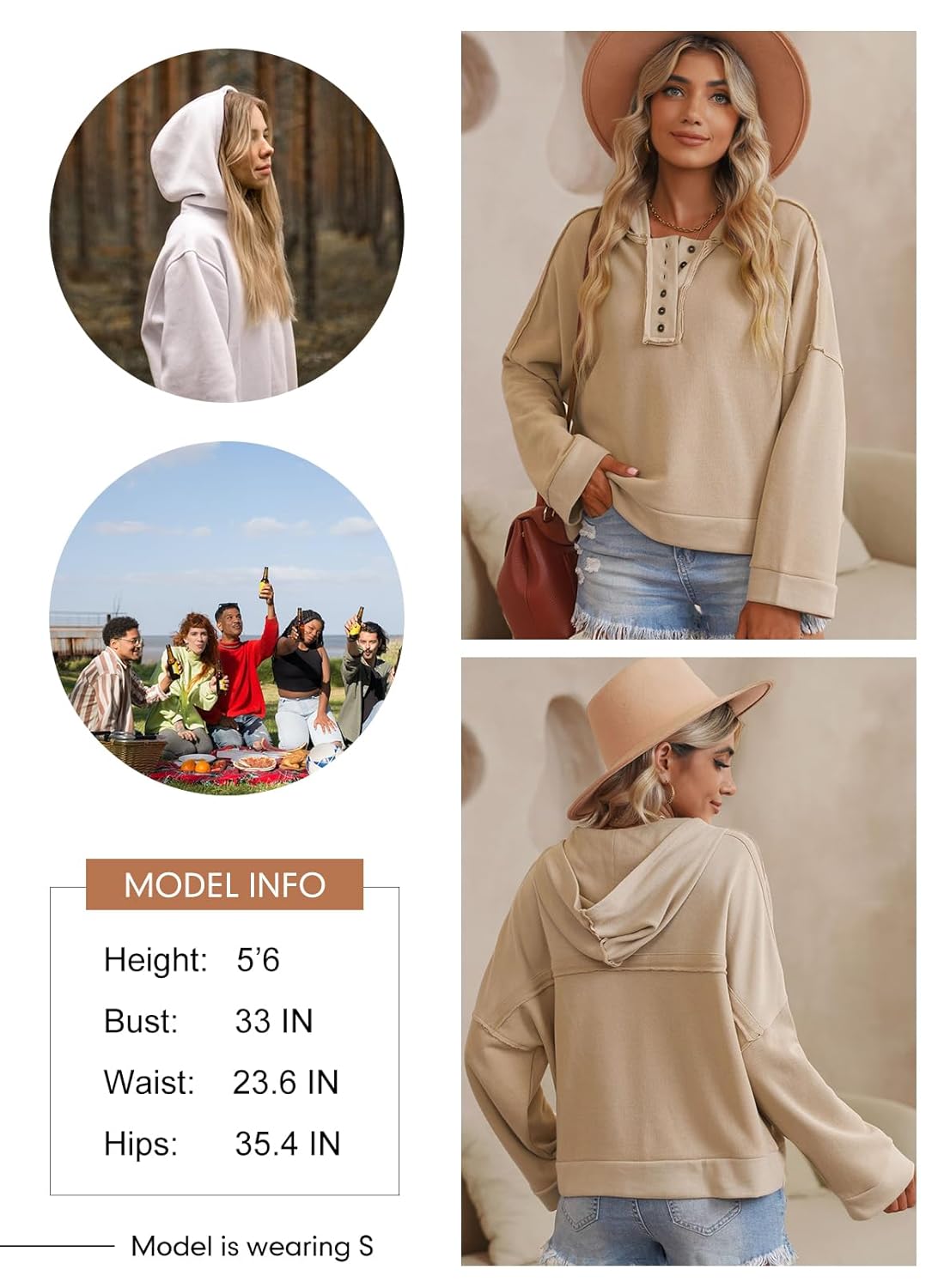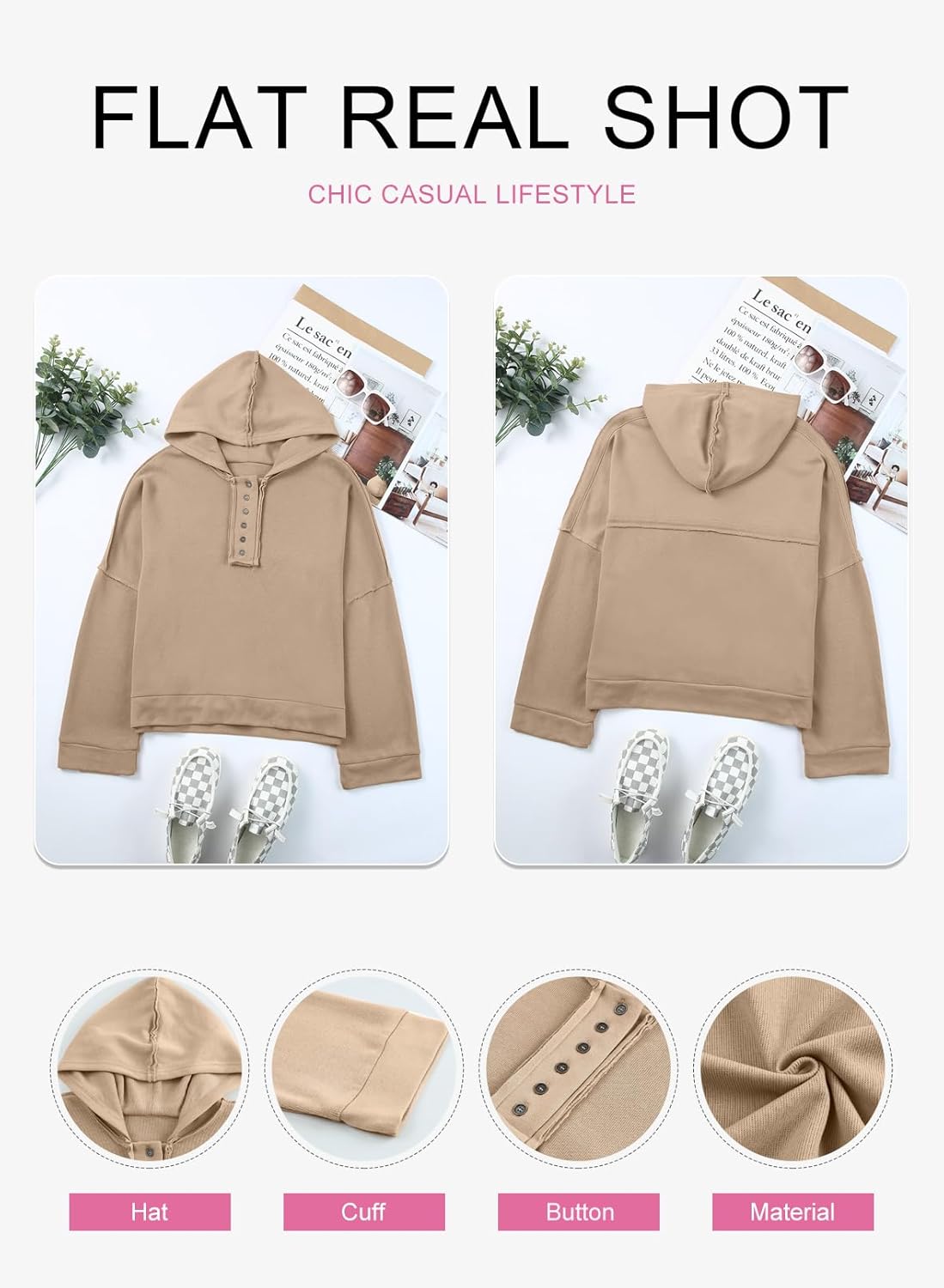 About Dokotoo Hoodies for Women 2024 Fashion Fall V Neck Button Down Long Sleeve Hooded Sweatshirts Tops