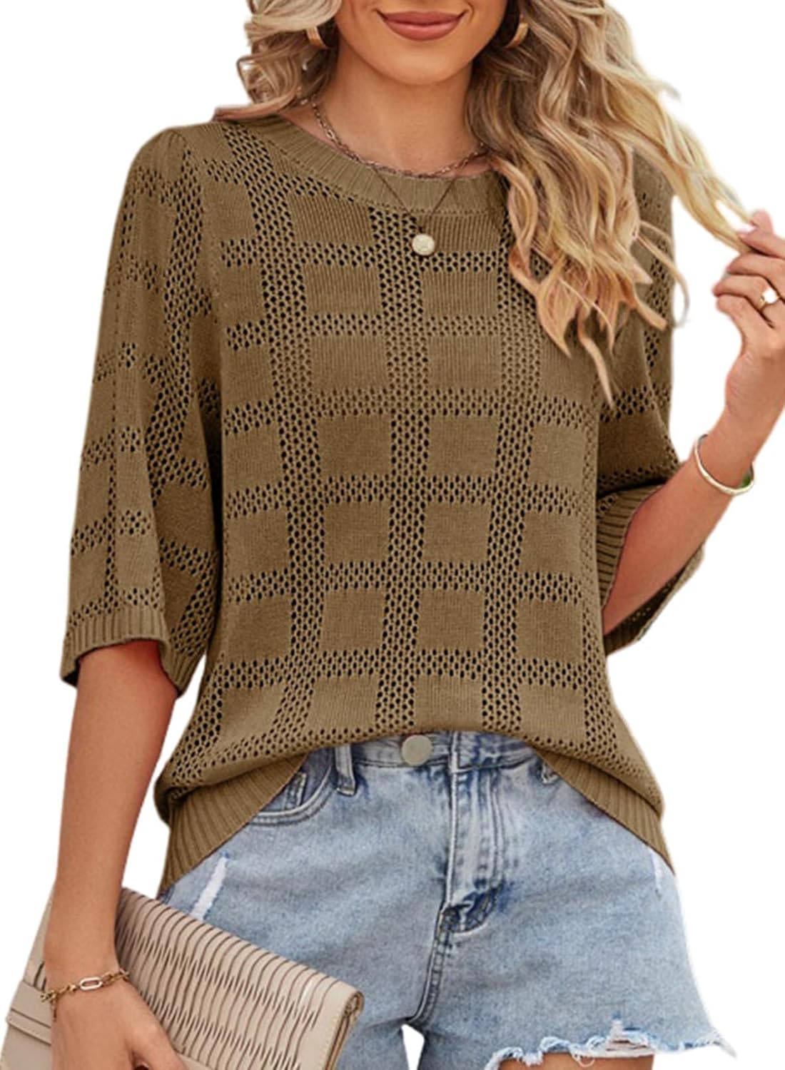Photos: Dokotoo Women’s Casual Short Sleeve Loose Tunic Tops Lightweight Crochet Knit Summer Sweaters Blouses by Dokotoo