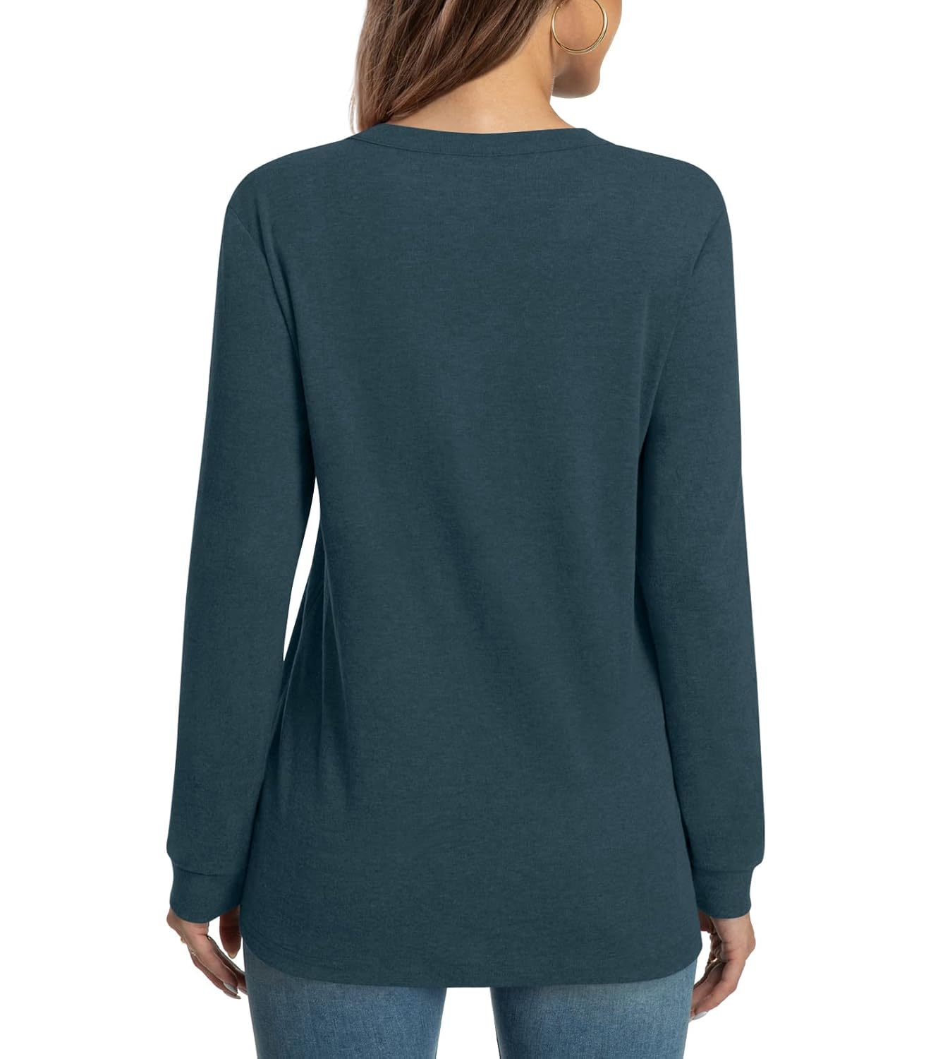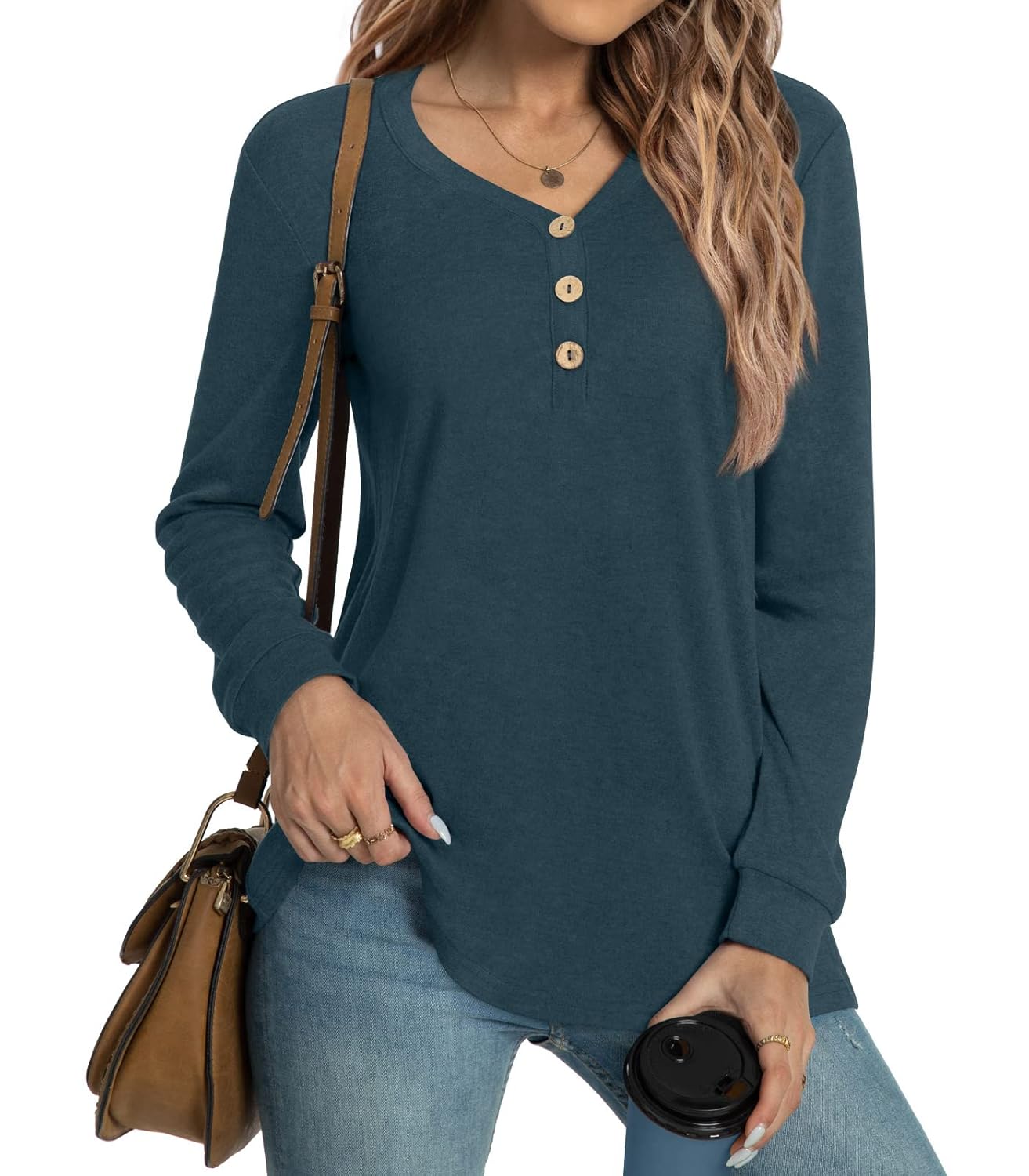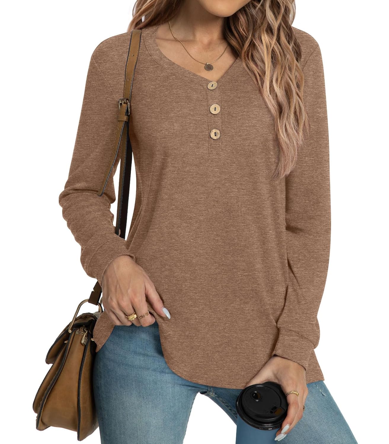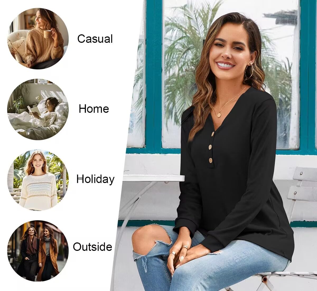 About HOTGIFT Womens 2025 Blouse Winter Fall Long Sleeve Tunic Tops Casual V Neck Button T-Shirts